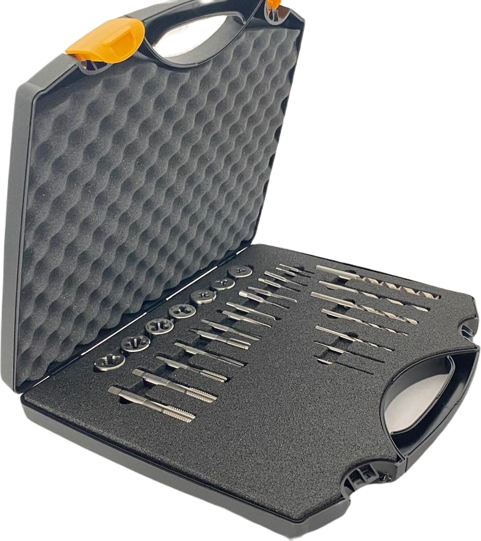 Набор матриц и метчиков размерами М3-М12 производства FANAR с наименованием производителя CZB-29W HSS — это набор профессиональных инструментов для нарезания резьбы, применяемых на профессиональных заводах, в мастерских и инструментальных цехах, где обеспечивается повторяемость размеров и соблюдение допусков и точности. требуется внутренняя и внешняя резьба.