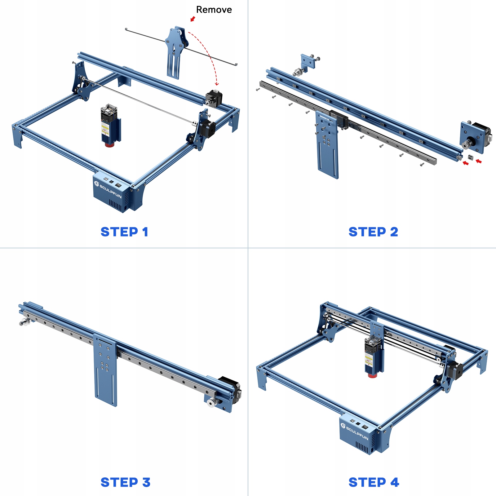 Официальная ось Sculpfun x: официальный компонент обновления, разработанный Sculpfun, может идеально адаптироваться к машинах S6/S9, а инсталляция очень проста.