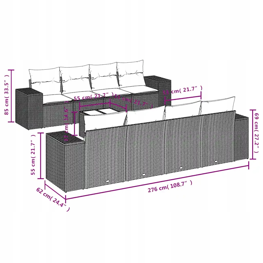 - Прочный материал: Набор изготовлен из полиэтилена ротанга, известного своей высокой прочностью и легкостью в уходе. Это идеальный выбор для использования на открытом воздухе, устойчивый к погодным условиям.
