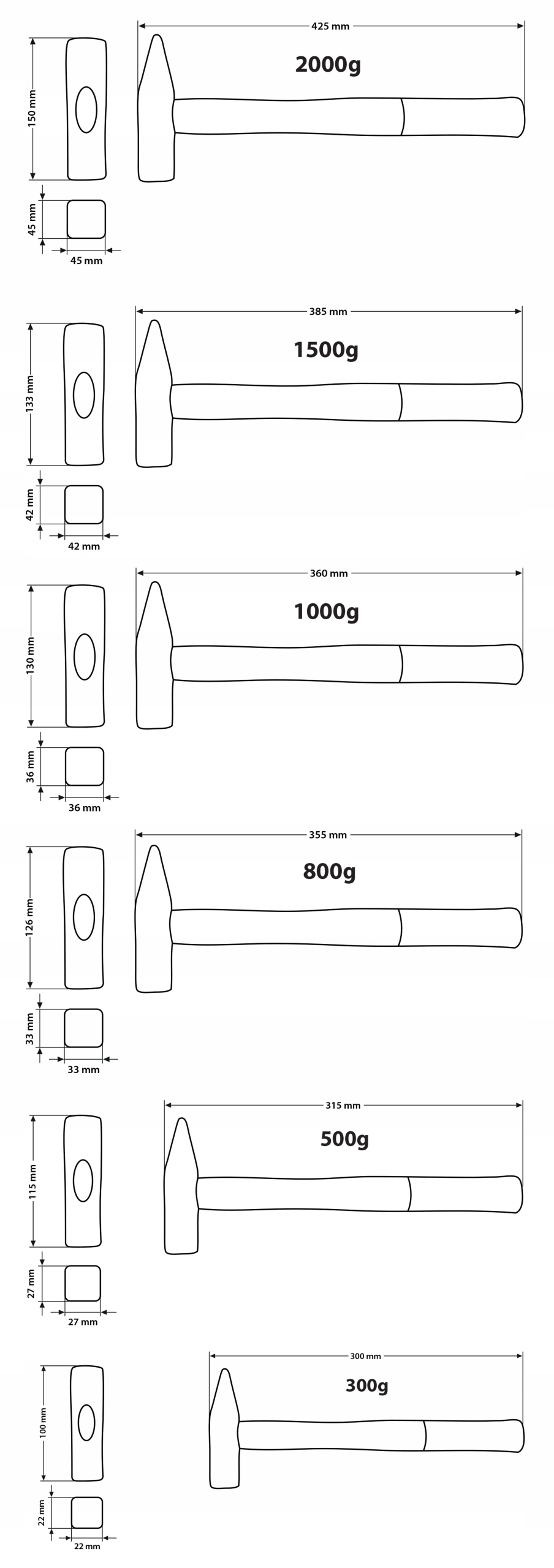 НАБОР МОЛОТОКОВ LOCKSTOCK 6 ШТ. 300-2000 G С РУЧКОЙ из ЯПЕНЯ