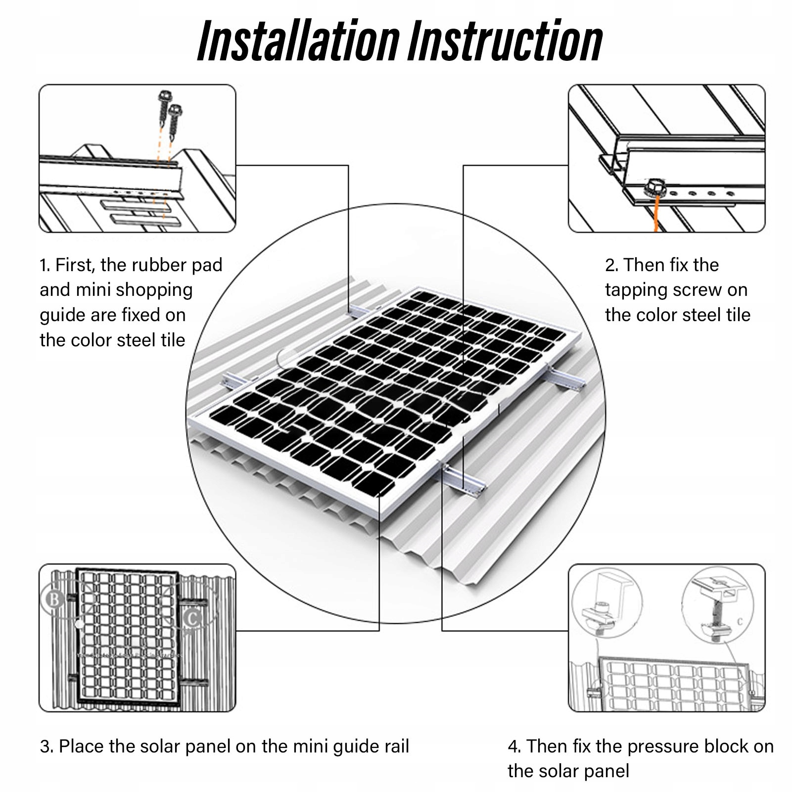 2. Длина направляющей: Мини-рейка длиной 400 мм (16 дюймов) совместима со многими типами солнечных панелей и подходит для всех типов крыш, покрытых цветной стальной черепицей, кирпичом и асфальтовой черепицей.