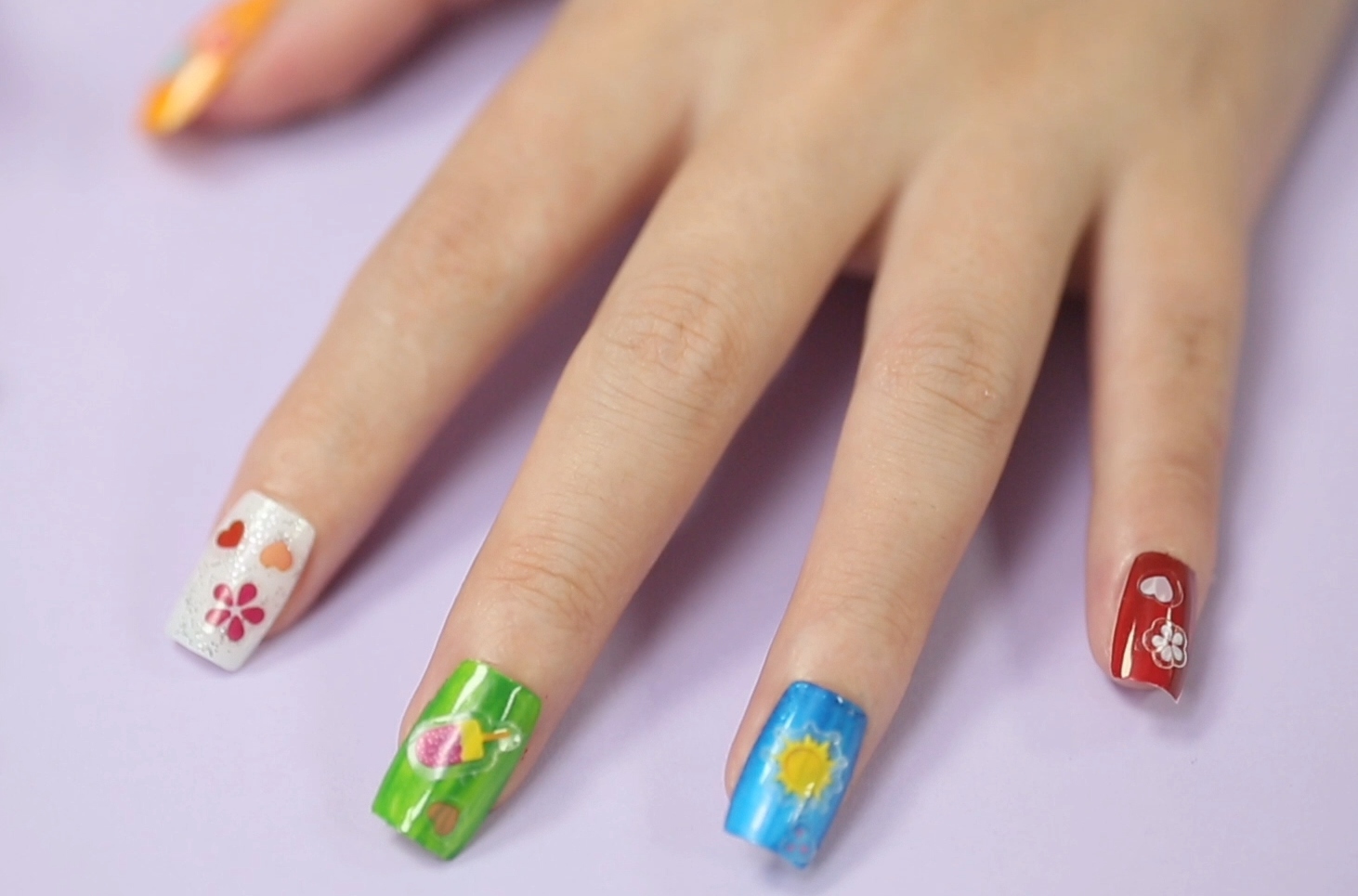 Много аксессуаров , благодаря тому, что дети могут создавать свои собственные модные украшения для ногтей.