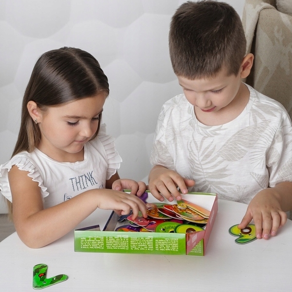 Магниты прочные и благодаря подходящей форме удобны для детской руки. Закругленные края обеспечивают безопасность во время игры. Игра эффективно развивает координацию движений, что крайне важно для самых маленьких. Благодаря небольшой форме они не займут много места и подойдут даже для поездки в отпуск.
