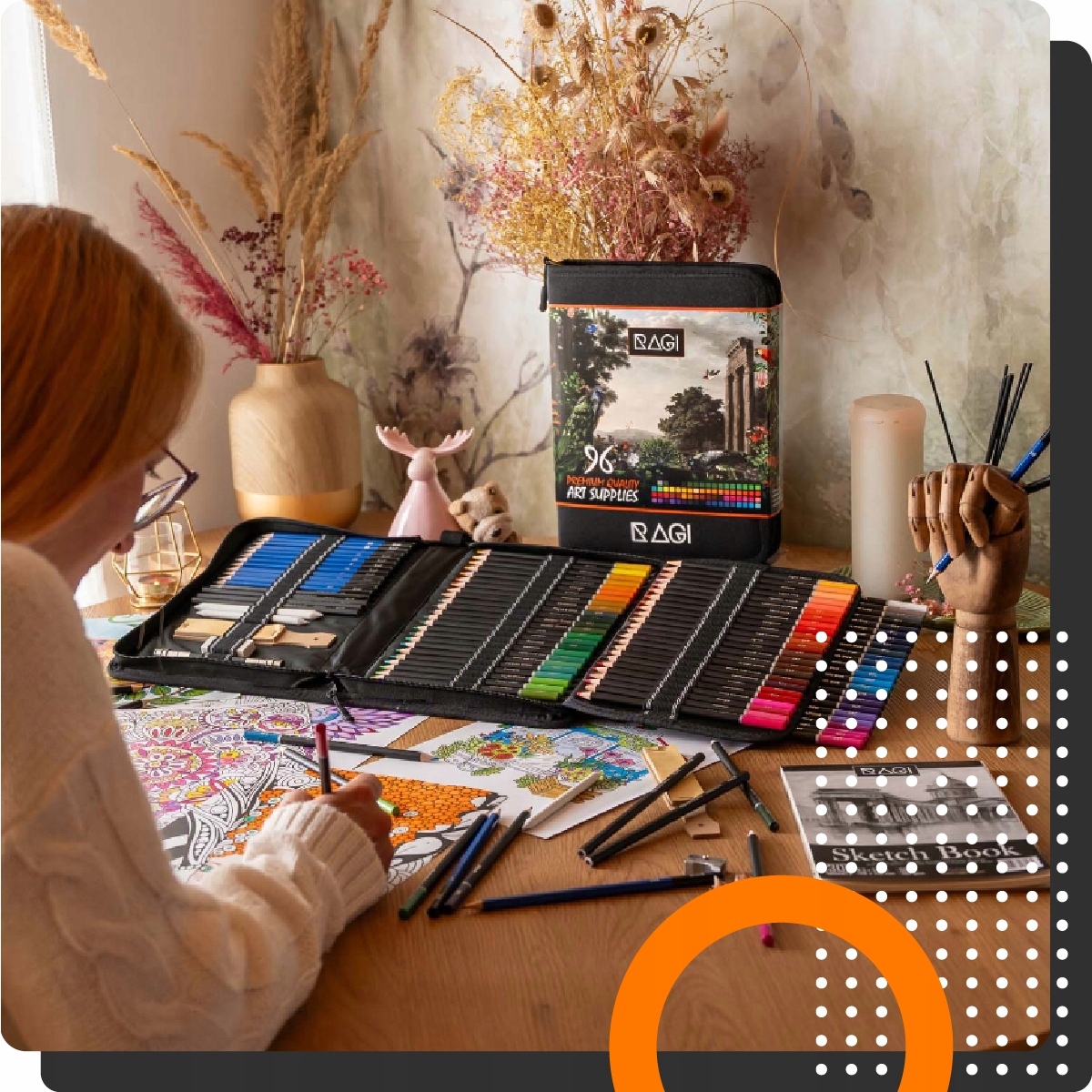 Качественный профессиональный набор для создания рисунков и эскизов. Позволяет использовать различные техники рисования и живописи. Это позволяет развивать свои навыки и разнообразить времяпрепровождение. Подходит для детей и взрослых. Будет полезно студентам, а также любителям рисования, желающим выйти на новый уровень.