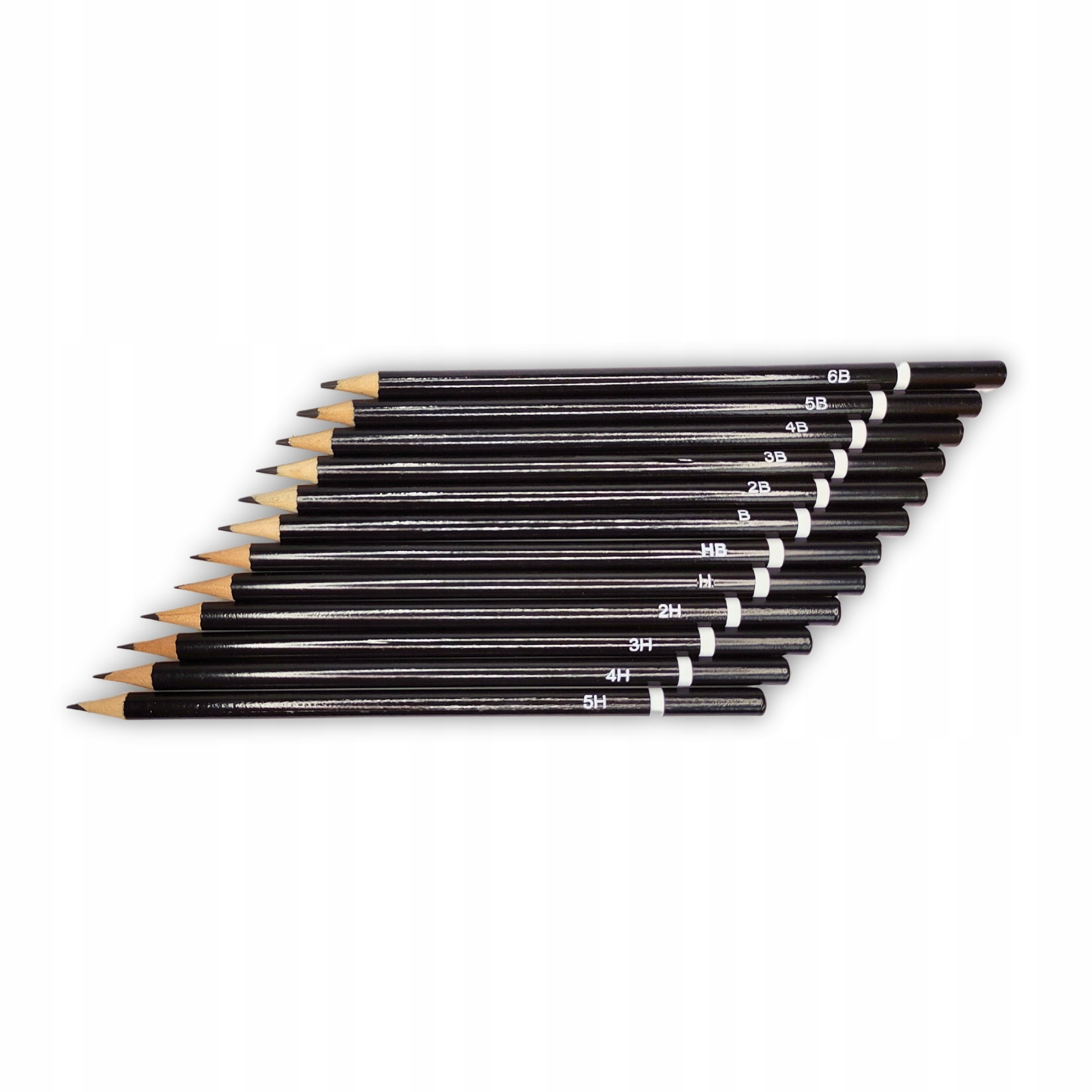 - 12 деревянных карандашей с графитовым грифелем: H, B, HB, 2H, 3H, 4H, 5H, 2B, 3B , 4В, 5В, 6В