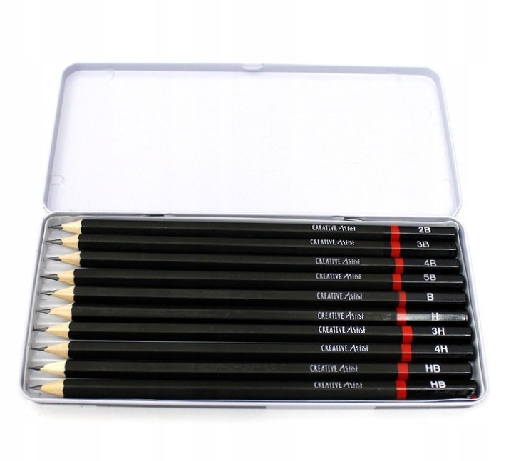 Набор из 10 профессиональных карандашей — это основной рабочий инструмент каждого художника, как любителя, так и профессионала. В предложении представлены карандаши различной твердости, от 6В до 4Н, адаптированные к различным потребностям и техникам рисования.