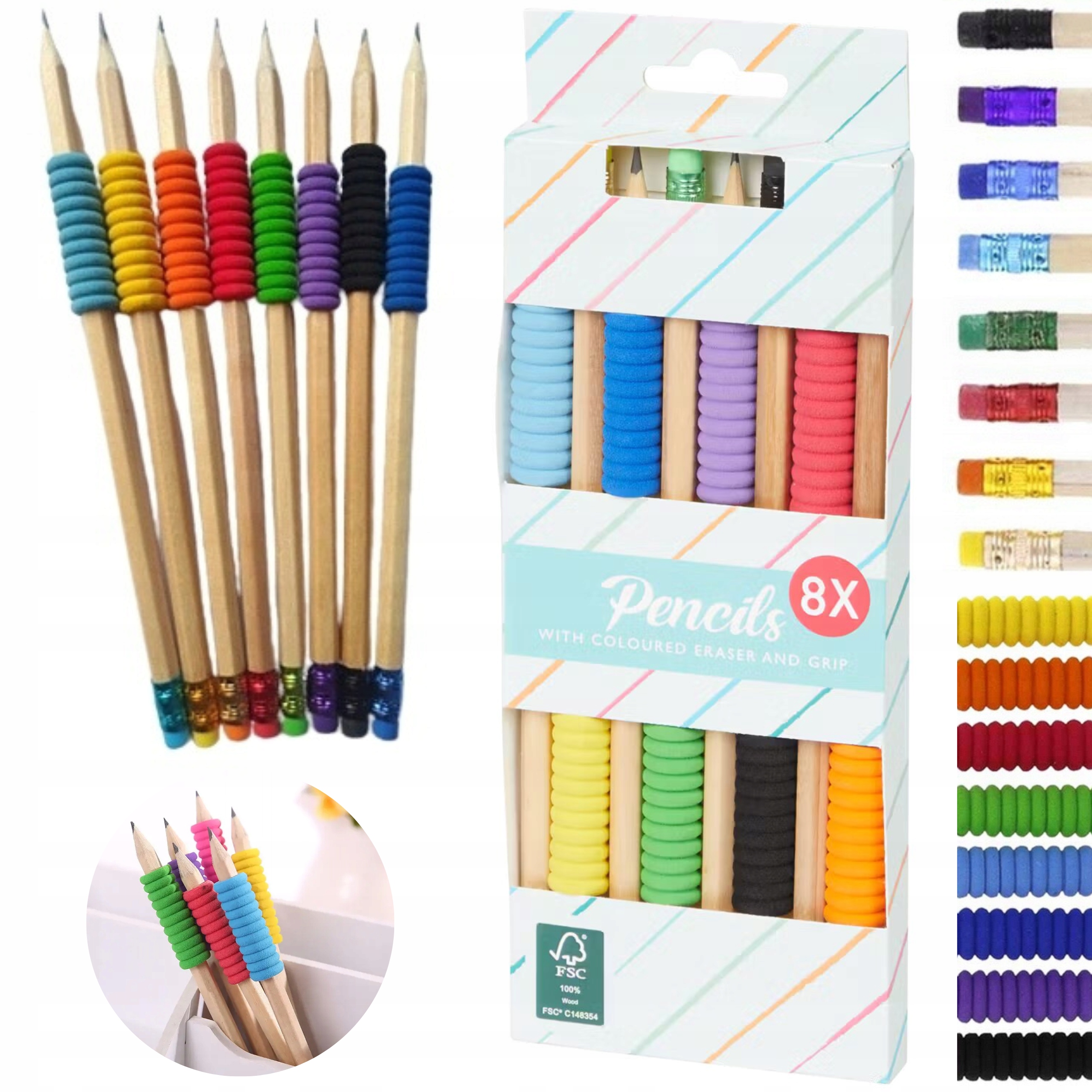 НАБІР ОЛІВЦІВ З 8 ОЛІВЦІВ З КОЛЬОРОВОЮ ГУМКОЮ ТА РУЧКОЮ