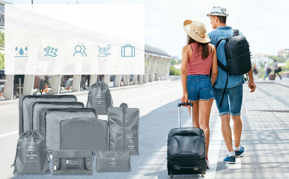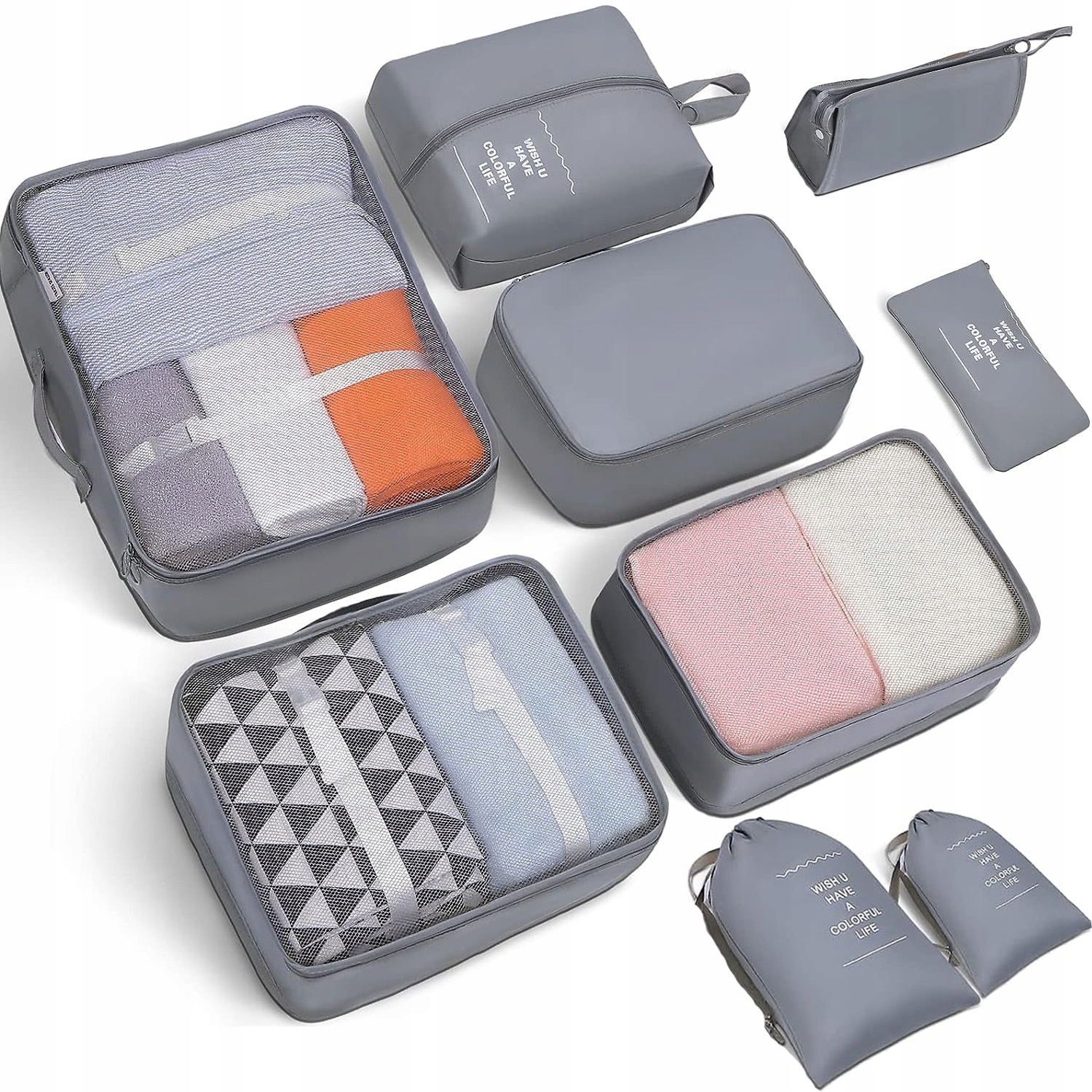 - Набор органайзеров для багажа, состоящий из 9 предметов, идеально вписывается в большинство предметов ручной клади, выходного багажа, сумок и авиакейсов.