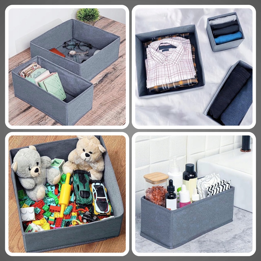 В этом наборе из 6 органайзеров вы найдете порядок и уют в вашем доме. Различные размеры позволяют разместить нижнее белье, косметику и безделушки в одном месте. Серый цвет подойдет к любому интерьеру, а воздушный флизелин обеспечит свежесть и чистоту.
