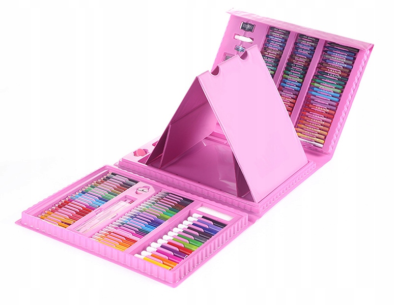 В нашем художественном наборе каждый найдет что-то для себя — ручки для раскрашивания, мелки для рисования и краски для рисования. Все это в насыщенных цветах, которые отлично смотрятся на бумаге. Все упаковано в удобный чемодан, который можно легко сложить, закрыть и взять с собой - в школу, детский сад, на занятия рисованием или в школу. b>поездка рисовать на природе!