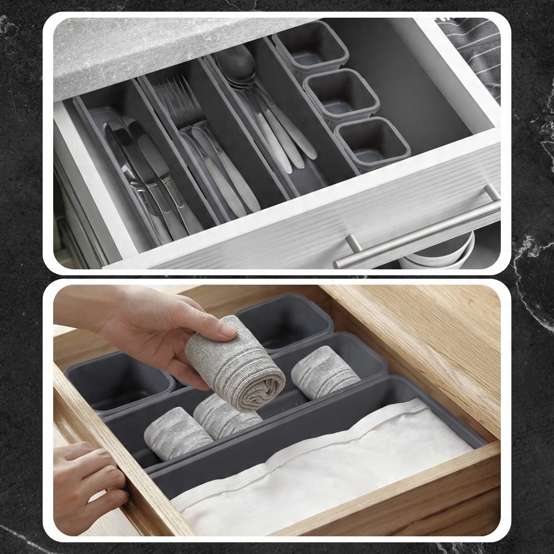 НАБІР ОРГАНІЗАТОРІВ ВСТАВКИ ДЛЯ ЯЩИКІВ, 8 шт., СІРИЙ