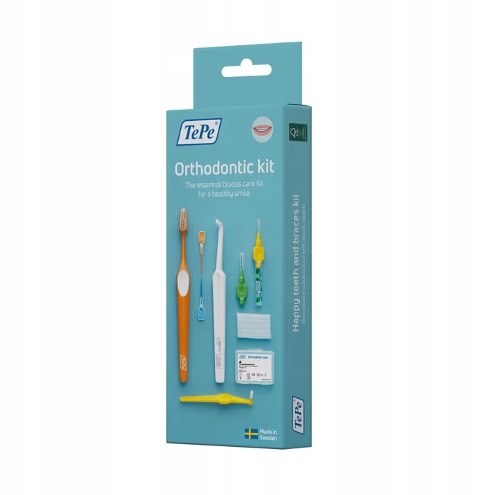 Ортодонтический набор TePe содержит тщательно отобранные продукты, которые помогут вам сохранить зубы и десны чистыми и здоровыми при ношении ортодонтических брекетов.