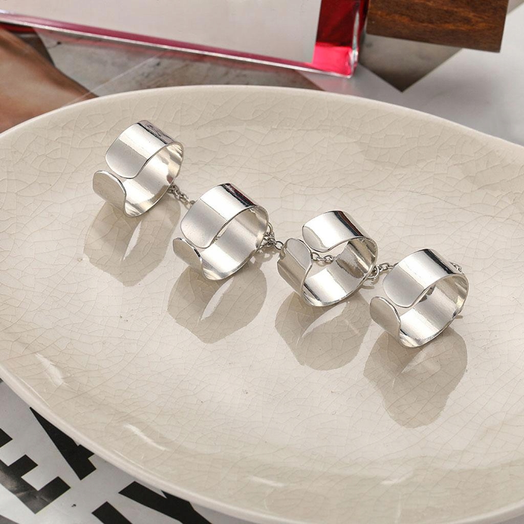 Набор панк -пальцев кольца с цепными прямыми гальваническими 4 клетками