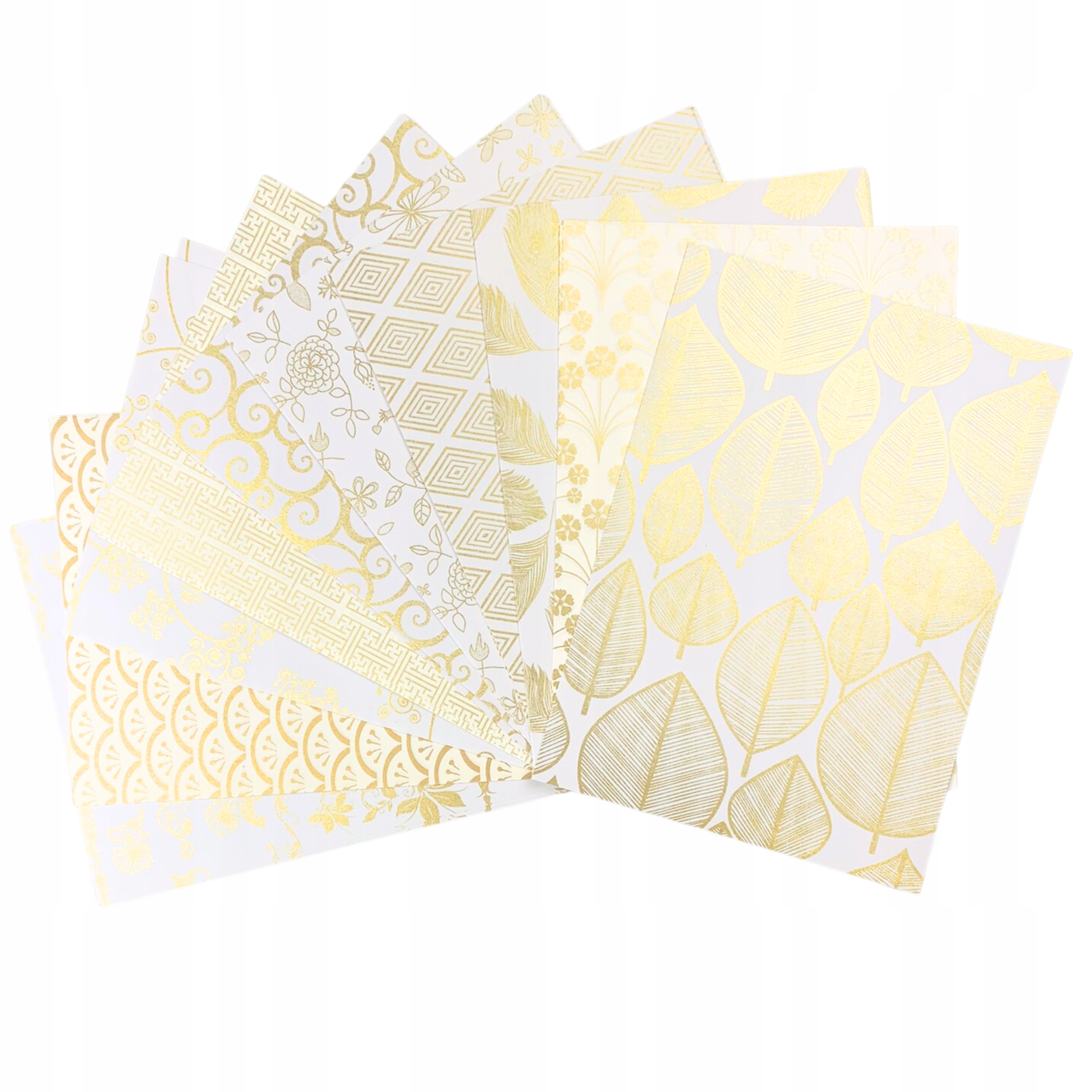 - В комплект входит 50 листов белой бумаги с золотистым металлизированным узором