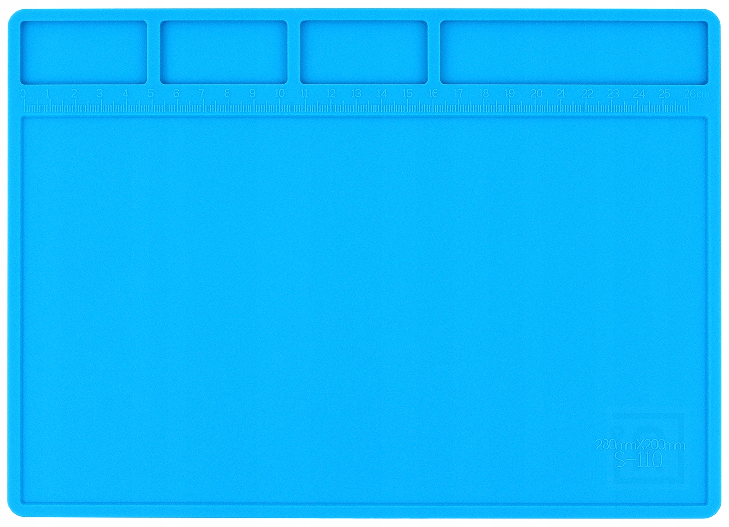 Изготовлен из силикона, устойчивого к температуре 500°C. Благодаря этому паяльные работы можно выполнять прямо на плате, расположенной на коврике.