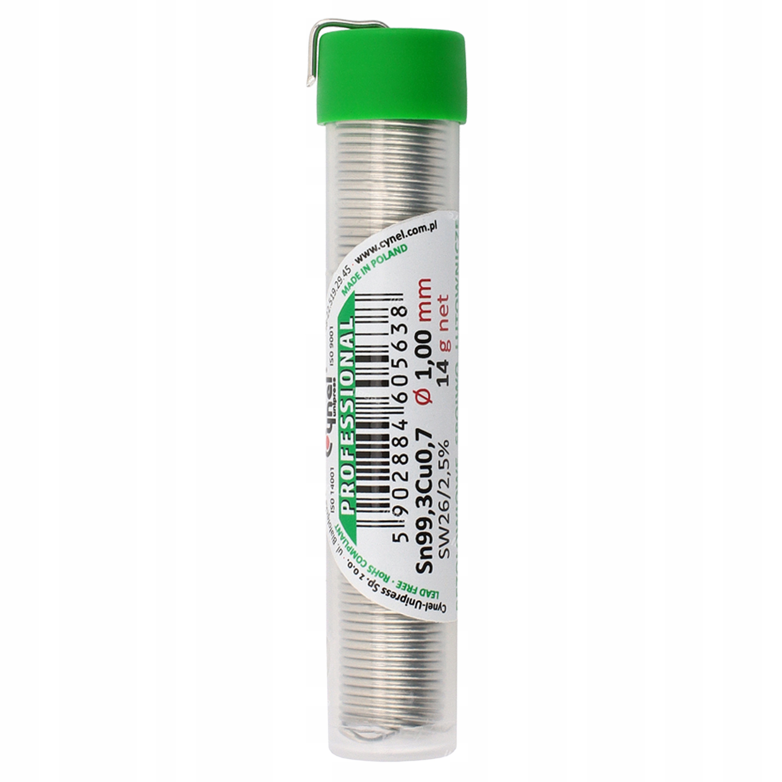 <ул>Олово бессвинцовое Cynel Sn99.3Cu0.7 14г 1мм 3м- с флюсом SW26/2,5%