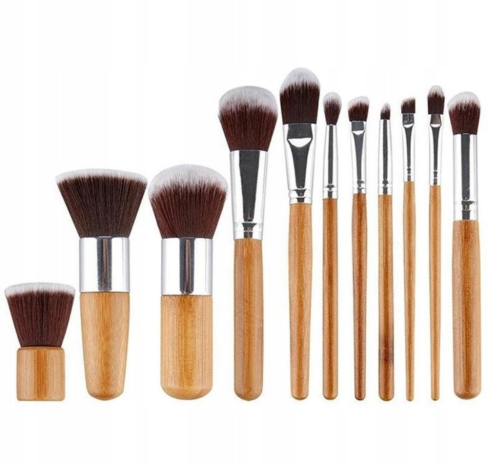 НАБІР ПЕНЗЛІВ ДЛЯ МАКІЯЖУ З БАМБУКУ 11 ШТ + ФУТОЙ