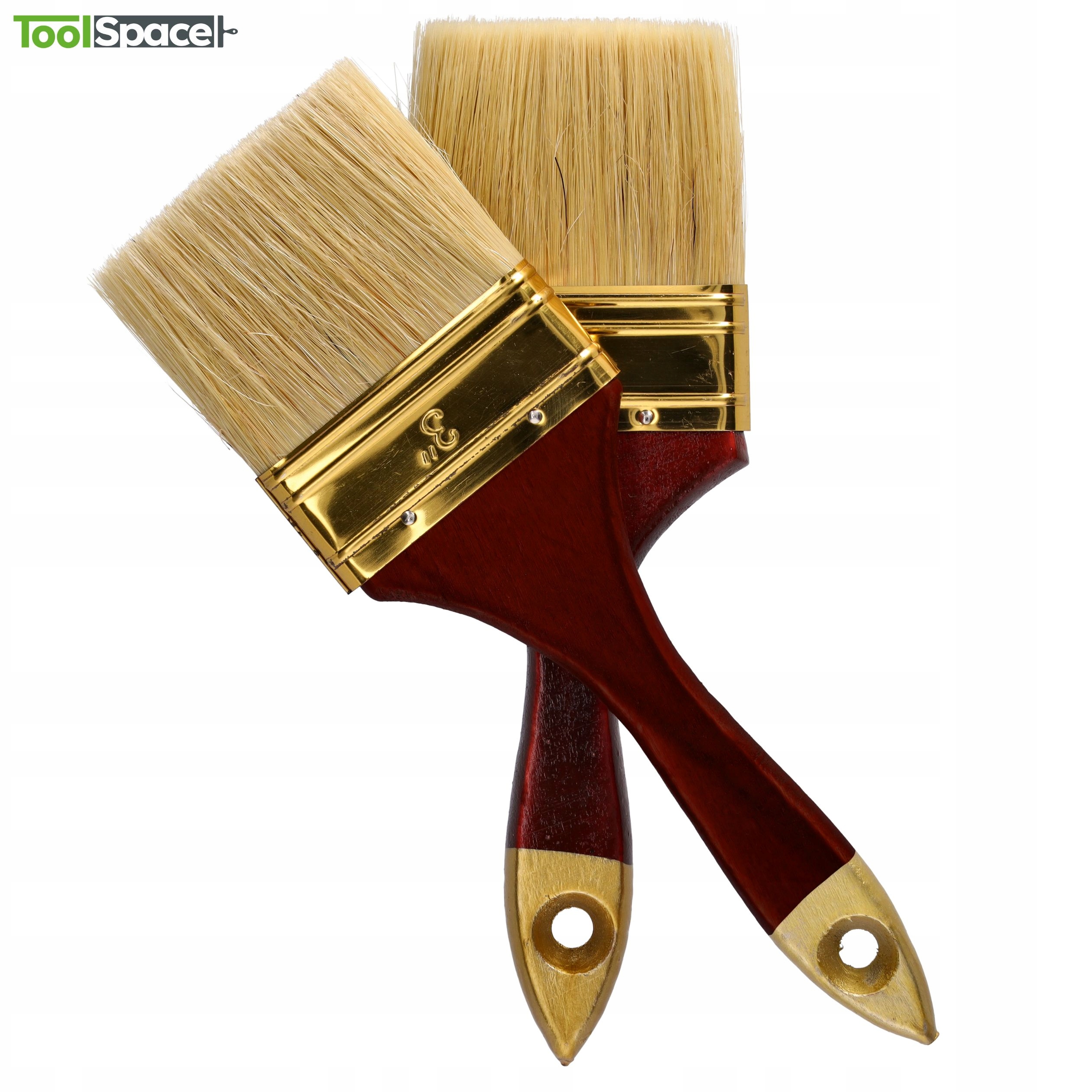 Кисть изготовлена из натуральной свиной щетины, известной своей превосходной гибкостью и высокой впитываемостью краски. Щетинки позволяют равномерно распределить краску без потеков, потеков и излишков. Благодаря этому вы добьетесь чистого, гладкого эффекта даже на больших поверхностях.