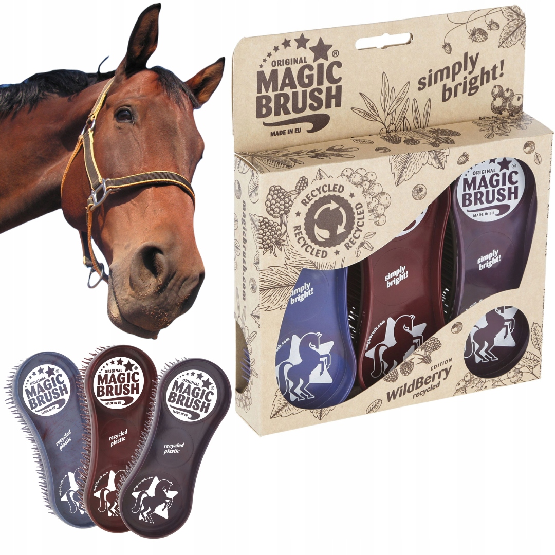 Хотите иметь удивительные инструменты для ухода за шерстью, ногами и копытами вашей лошади? Познакомьтесь с набором кистей WildBerry Recycled Magicbrush!