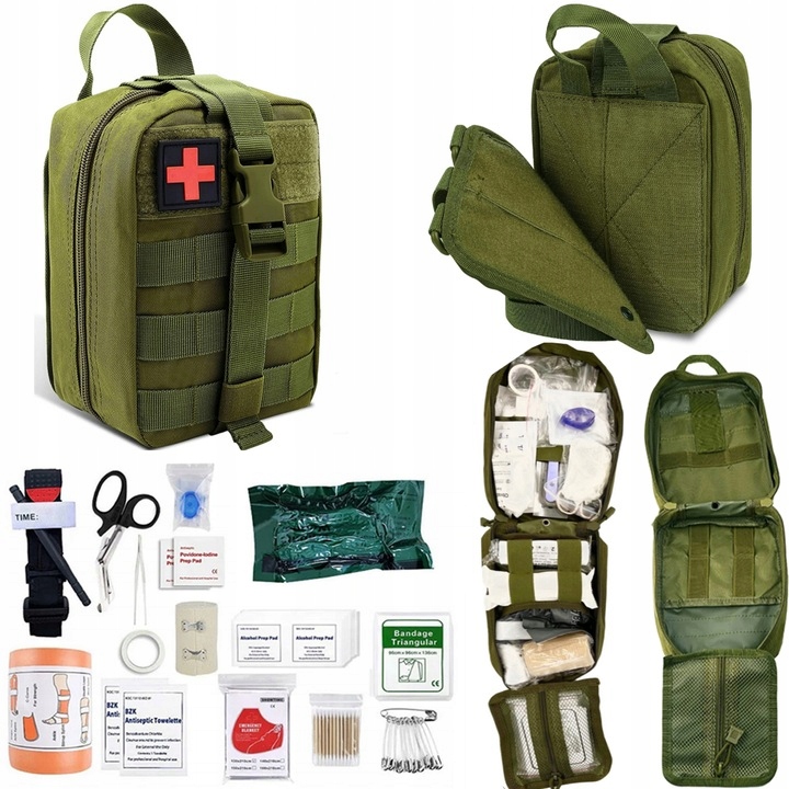 , оснащенный системой Molle, набор первой помощи может быть прикреплен к рюкзакам, жилетам и ремням, благодаря которой он всегда будет под рукой. Он также имеет вентиляционное отверстие в основе, которое способствует поддержанию свежести содержания