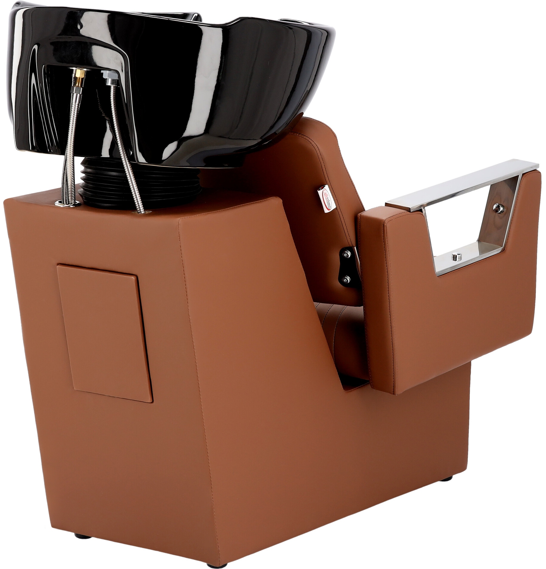 Дополнительная силиконовая крышка, размещенная между керамикой чаши и хромированной частью слива, изолирует и защищает хромированные элементы от влаги и коррозии. Автомойка имеет регулируемую чашу и силиконовую подушечку под голову клиента.