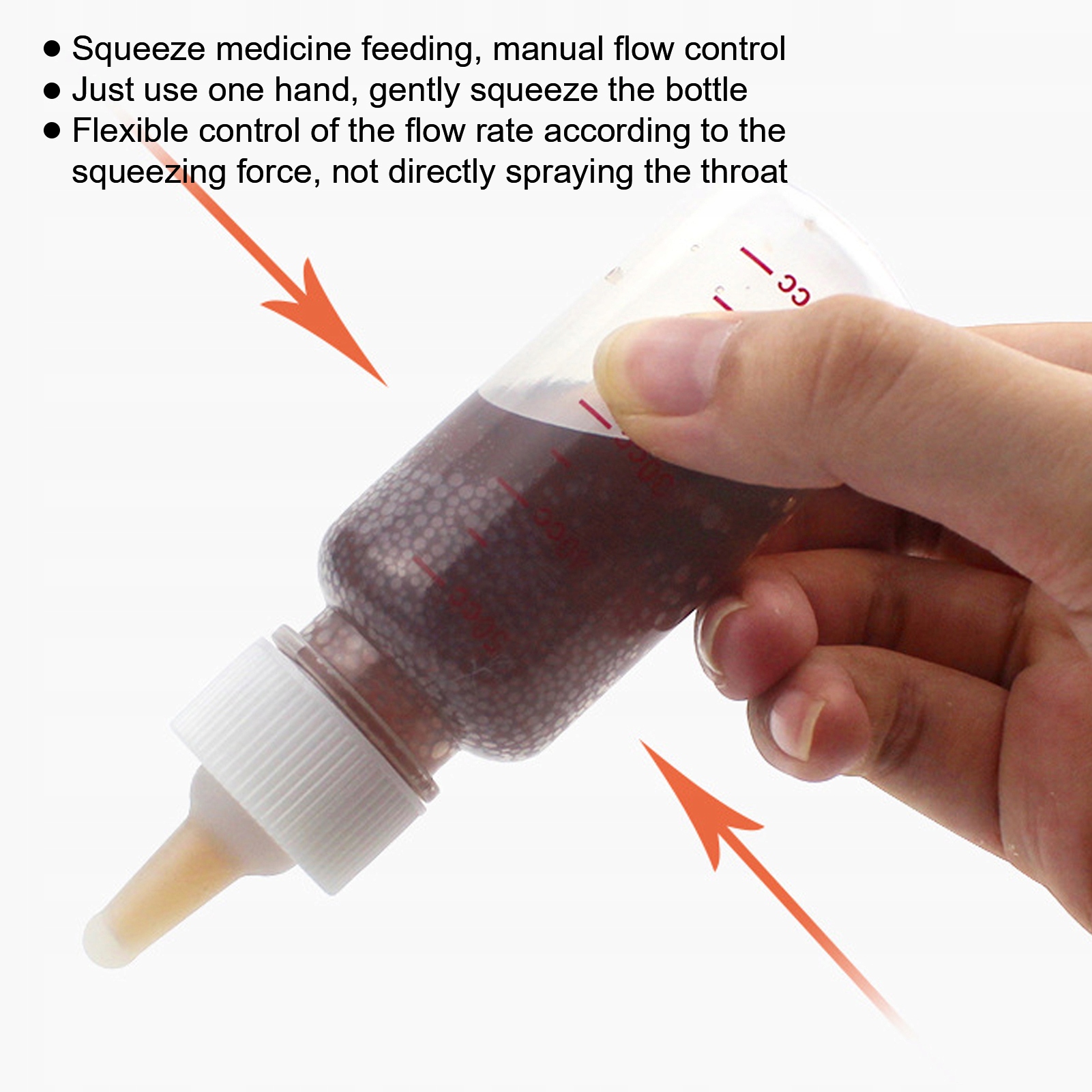 Бутылочка для кормления 1. Закрутите крышку и введите жидкое лекарство в цилиндр.2. После инъекции затяните крышку и совместите пасть питомца с выходным отверстием для препарата. Медицинская капельница 1. Используйте пипетку, чтобы набрать жидкость в чашку.2. Вставьте соску в пипетку, поместите ее в рот питомца и осторожно сожмите сосок.