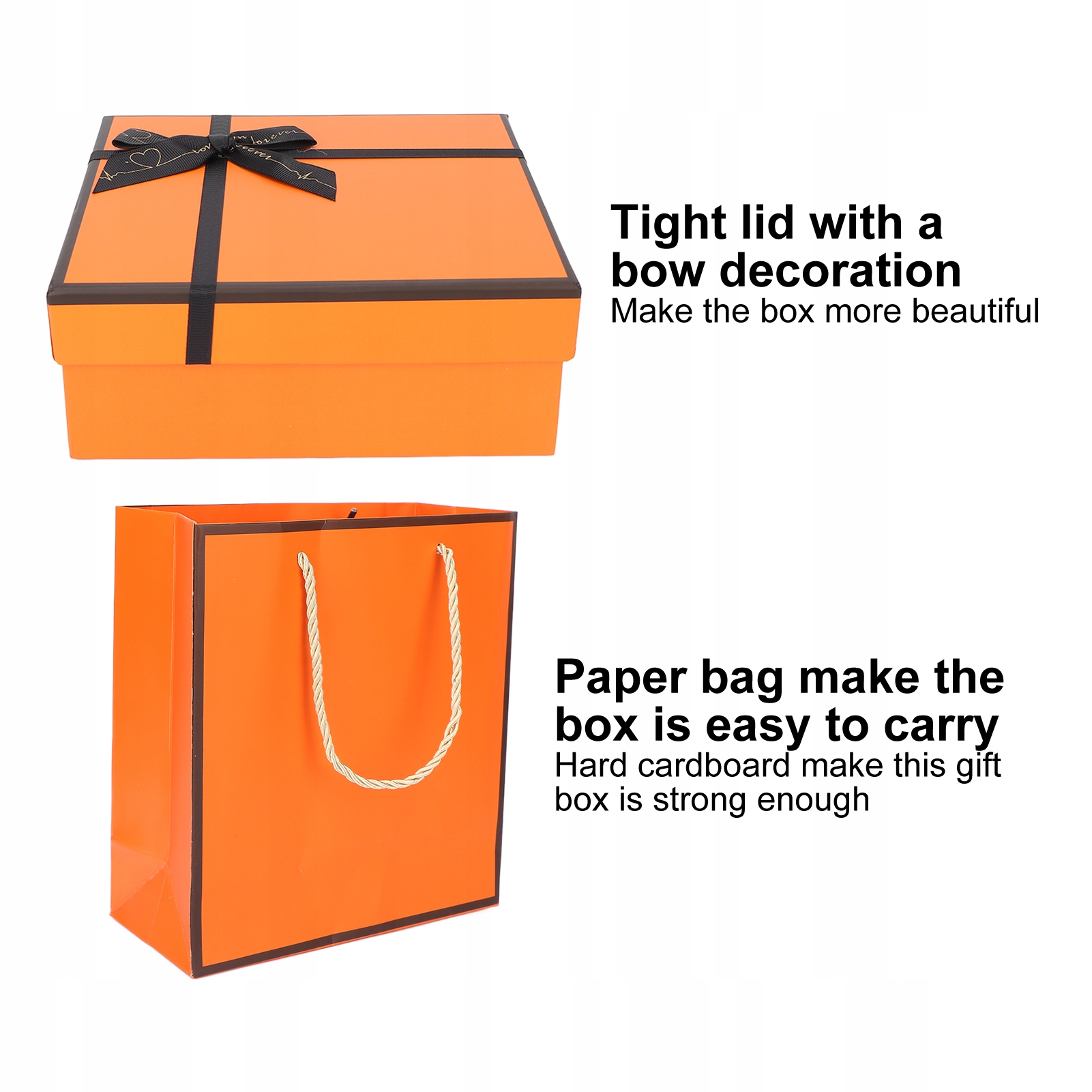 1. Красивая коробка: подарочная коробка имеет плотную крышку с декоративным бантом, что делает коробку более красивой, а бумажный пакет облегчает переноску коробки.