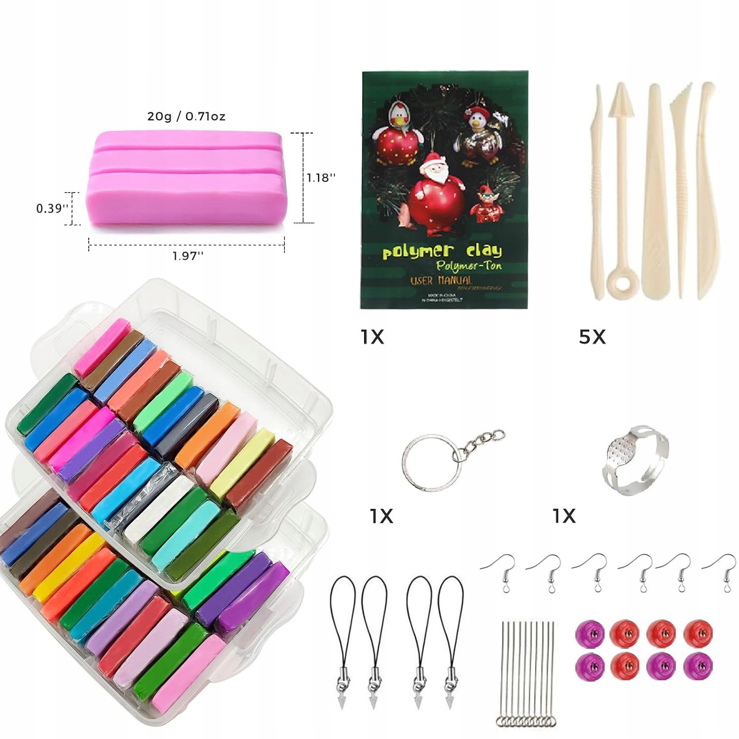 ❤️ В набор глины входит: В набор полимерной глины входят 50 ярких цветов, 5 глиняных инструментов и аксессуаров.