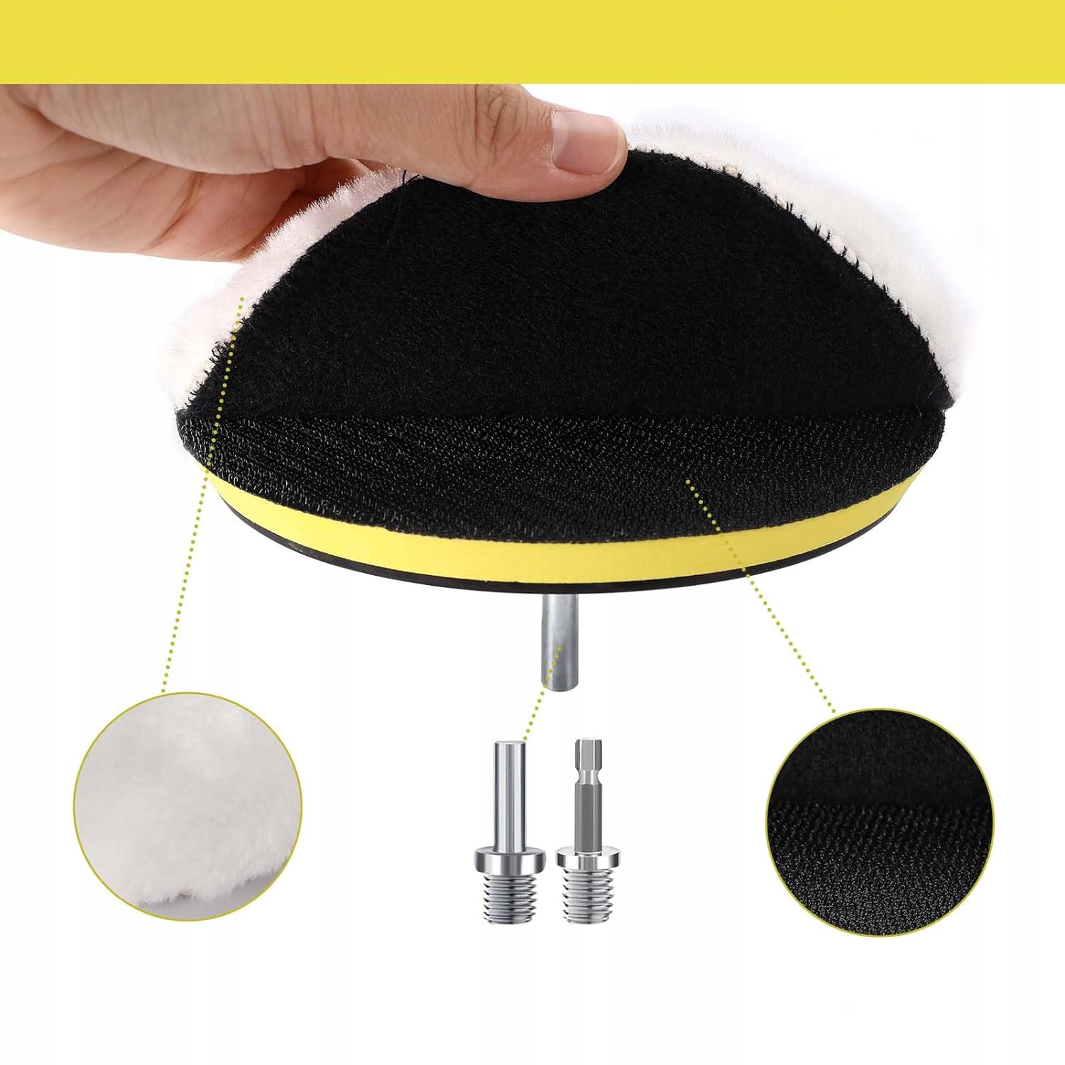 🚗🚗 Практичный набор для полировки: в комплект входят 5 6-дюймовых шерстяных полировальных подушечек, 1 адаптер для сверла, 1 подушечка на липучке, подходящая для сверл M14, достаточное количество шерстяных полировальных подушечек, которые можно использовать и заменять.