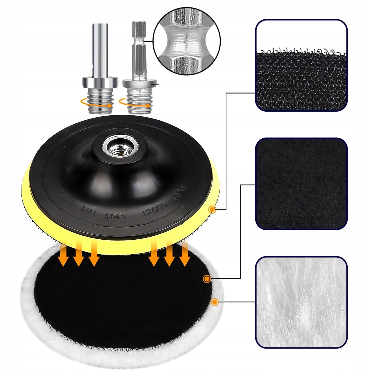 🚗🚗 Застежка-липучка: В набор инструментов для полировки входит 1 адаптер для сверла и 1 липучка. Застежка-липучка помогает надежно закрепить полировальный диск на крючке. Можно быстро установить или снять.
