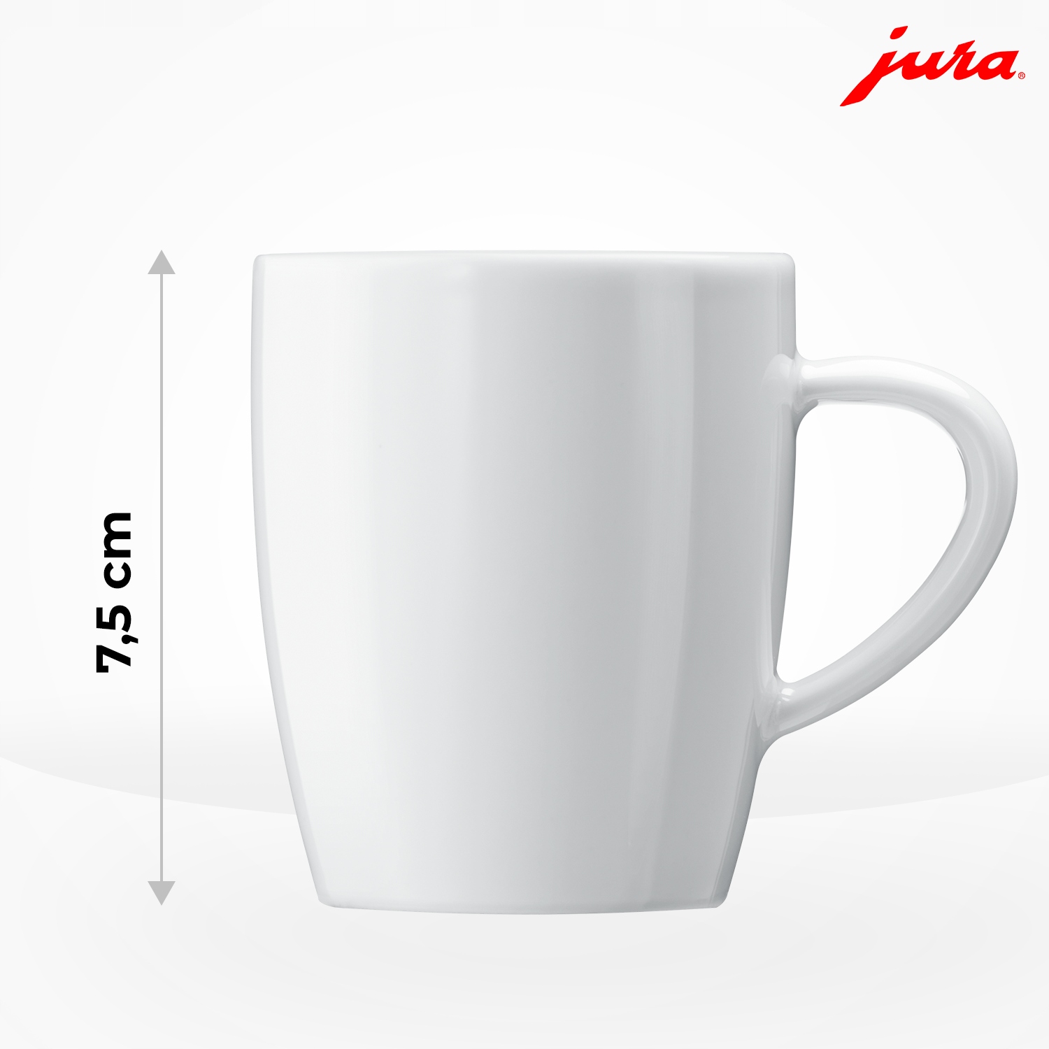 чашки Jura сделаны из фарфора высокого качества, который не только представляет себя, но и отлично содержит тепло. благодаря этому кофе остается горячим дольше, и его аромат полностью развивается. гладкие стены облегчают пену молока и сохраняют пену , если вы любите белый кофе.