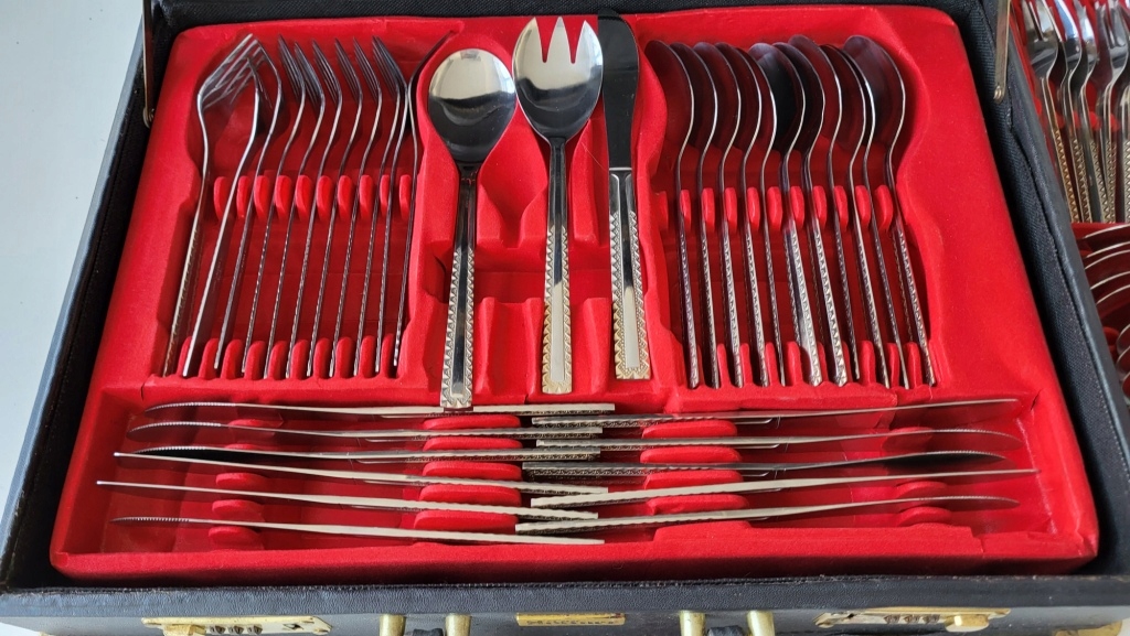 ПРОДАЮСЬ НАБОР ПОСЕРЕБРЕННЫХ СТОЛОВЫХ ПРИБОРОВ, БОЛЬШО ОКРАШЕННЫХ В ЧЕМОДАНЕ.НАБОР В СОСТОЯНИИ, ПРЕДСТАВЛЕННОМ НА ФОТО, НАБОР КУПЕН В ПОДАРОК, СТОЛОВЫХ ПРИБОРОВ НЕТ. ЧЕМОДАН БЫЛ ИСПОЛЬЗОВАН, НО ЧЕМОДАН ИМЕЕТ ПРИЗНАКИ ХРАНЕНИЯ В ВИДЕ НЕБОЛЬШИХ ЗАГРЯЗНЕЙ И ЦАРАПИН, ДАМЫ, ЛУЧШЕ МОЖНО ВИДИТЬ ЕГО НА ФОТОГРАФИЯХ, ДОБАВЛЕННЫХ НА АУКЦИОН. ЦЕНА УКАЗАНА ЗА ВЕСЬ НАБОР.