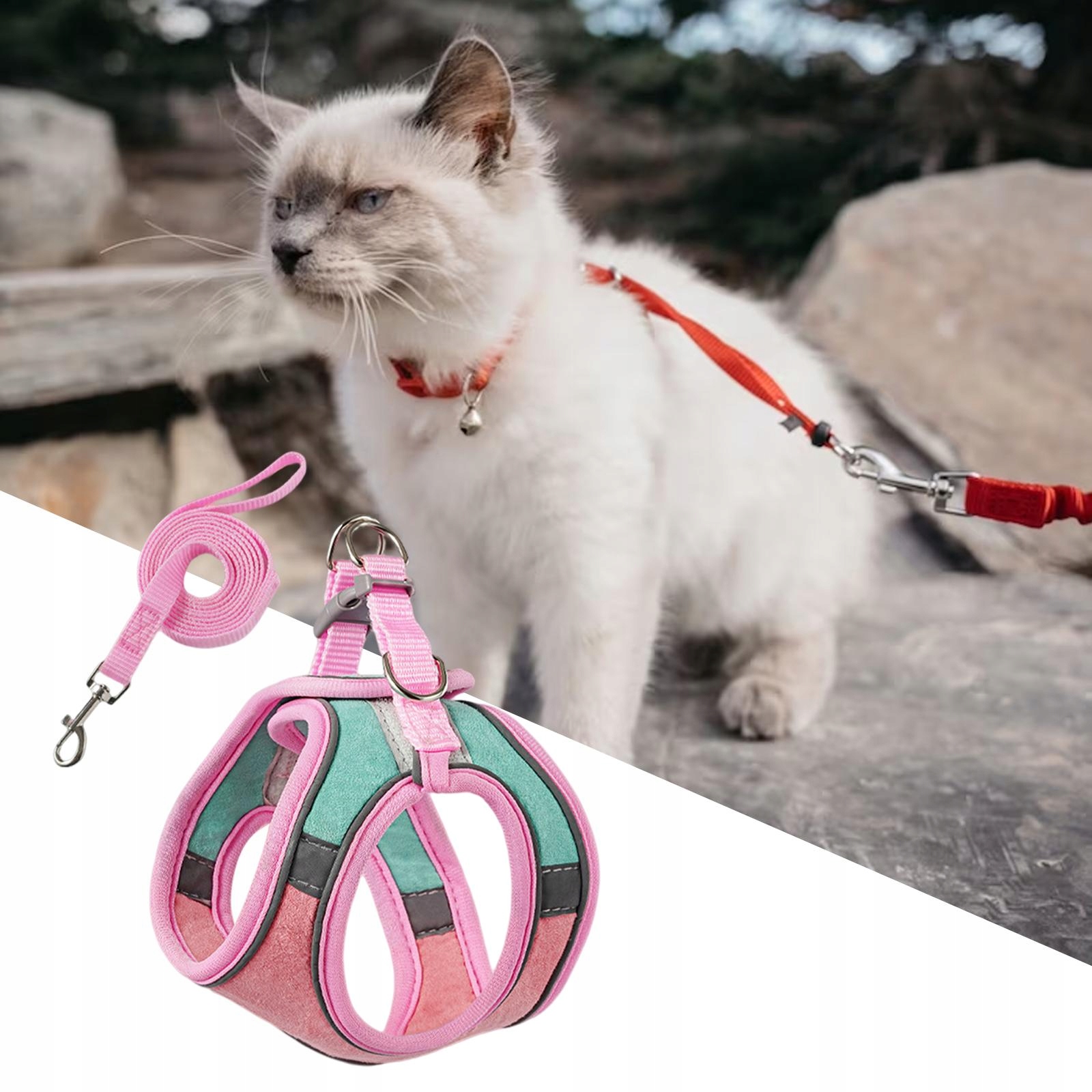 «Набор поводков для кошек, регулируемый жилет для котенка, защищающий от побега, M, розовый и зеленый»