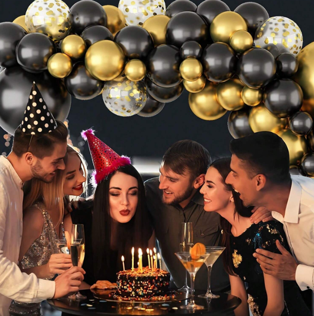 НАБІР ПОВІТРЯНИХ КУЛЬ ГІРЛЯНДА ПОВІТРЯНИХ КУЛЬ ЕЛЕГАНТНА АРКА ПРИКРАСИ ДНЯ НАРОДЖЕННЯ ЗОЛОТО-ЧОРНИЙ