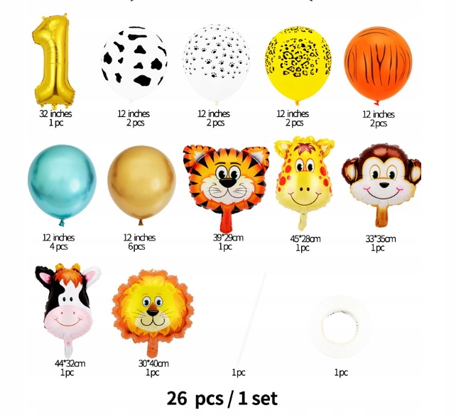 НАБІР ПОВІТРЯНИХ КУЛЬКІВ КУЛЬКИ ОДИН РІК ТВАРИНИ Великий 26 ел.