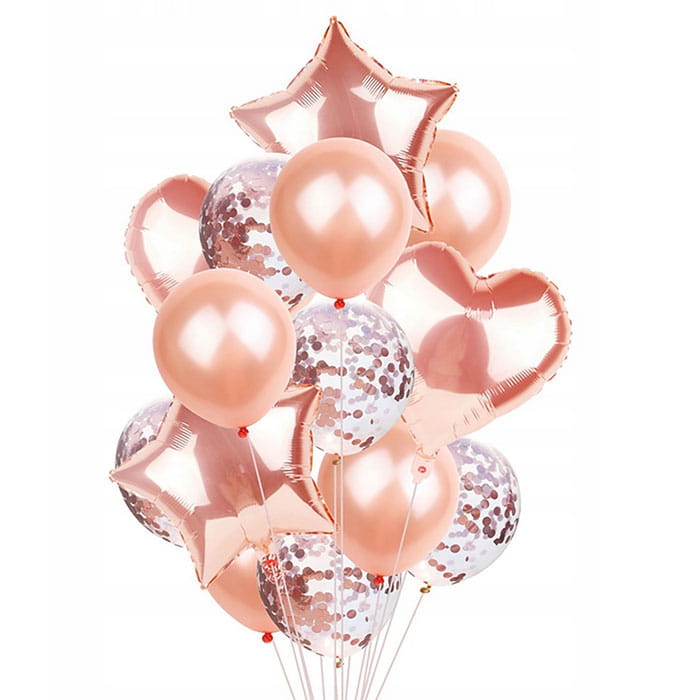 НАБОР ШАРОВ ЗОЛОТАЯ РОЗА ШАРЫ НА ДЕНЬ РОЖДЕНИЯ 14 ШТ.