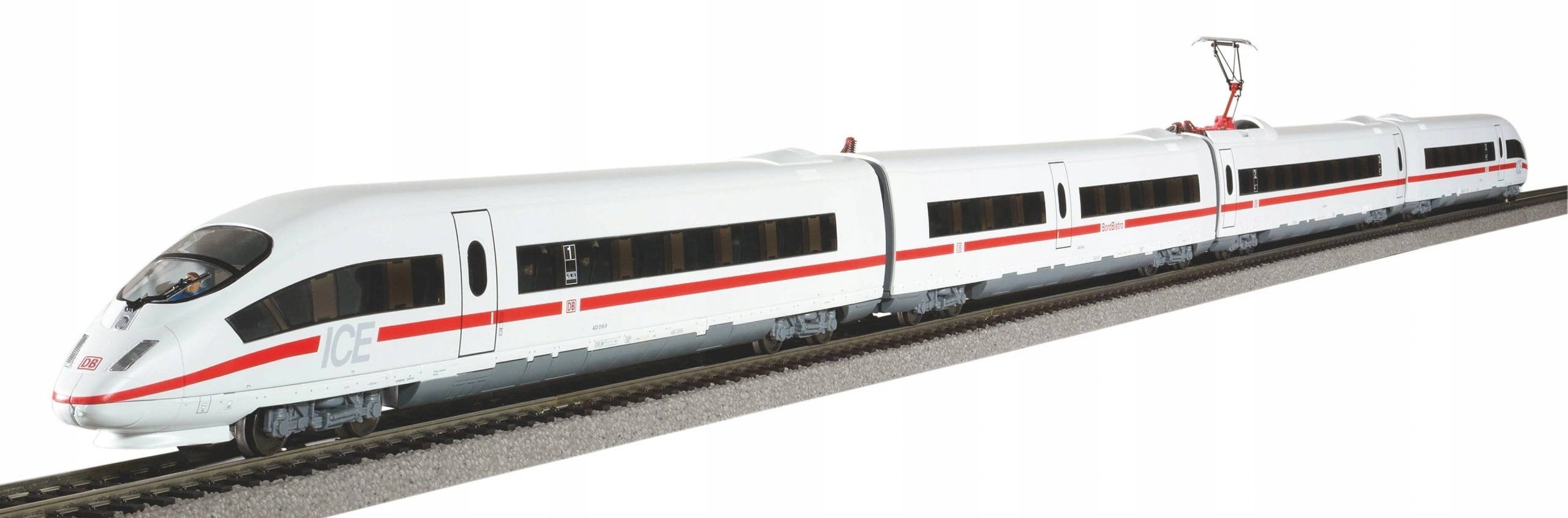 1 x ICE 3 с 2 моторизованными головками и 2 тележками 12 x 55412 балластных направляющих R2 422 мм 5 x 55401 прямых балластных направляющих 231 мм 1 x прямая направляющая 55406 для соединительной клеммы 1 x основание 55447 для соединительной клеммы 1 x соединительная клемма 55270 1 регулятор скорости 1 блок питания (адаптер 5,4 ВА)