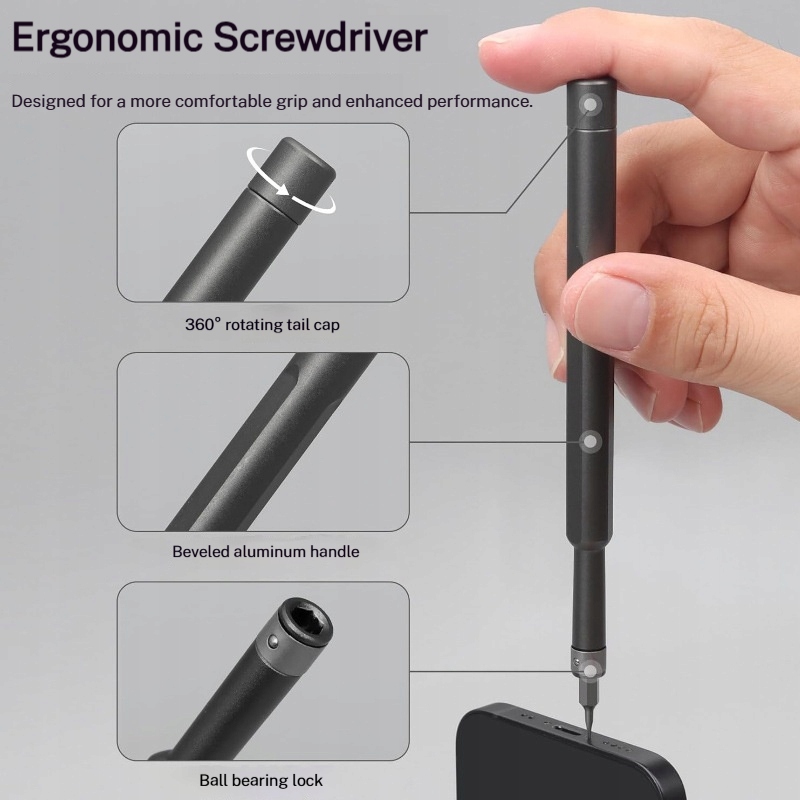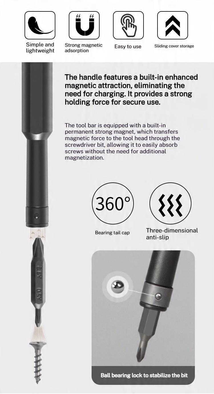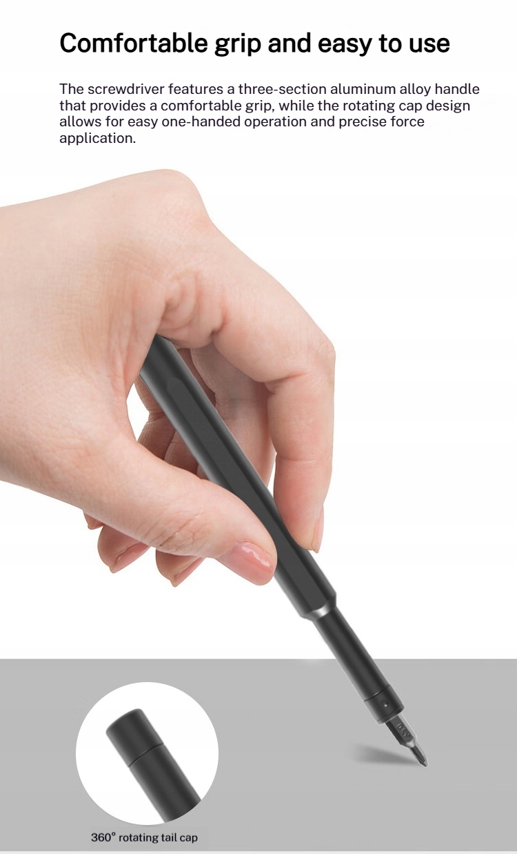 , разработанный для удобства и эффективности, отвертка имеет трехсегментную ручку алюминиевого сплава, обеспечивающая определенную сцепление, а вращающаяся крышка на 360 ° обеспечивает жидкость, одну из них с точным контролем прочности.