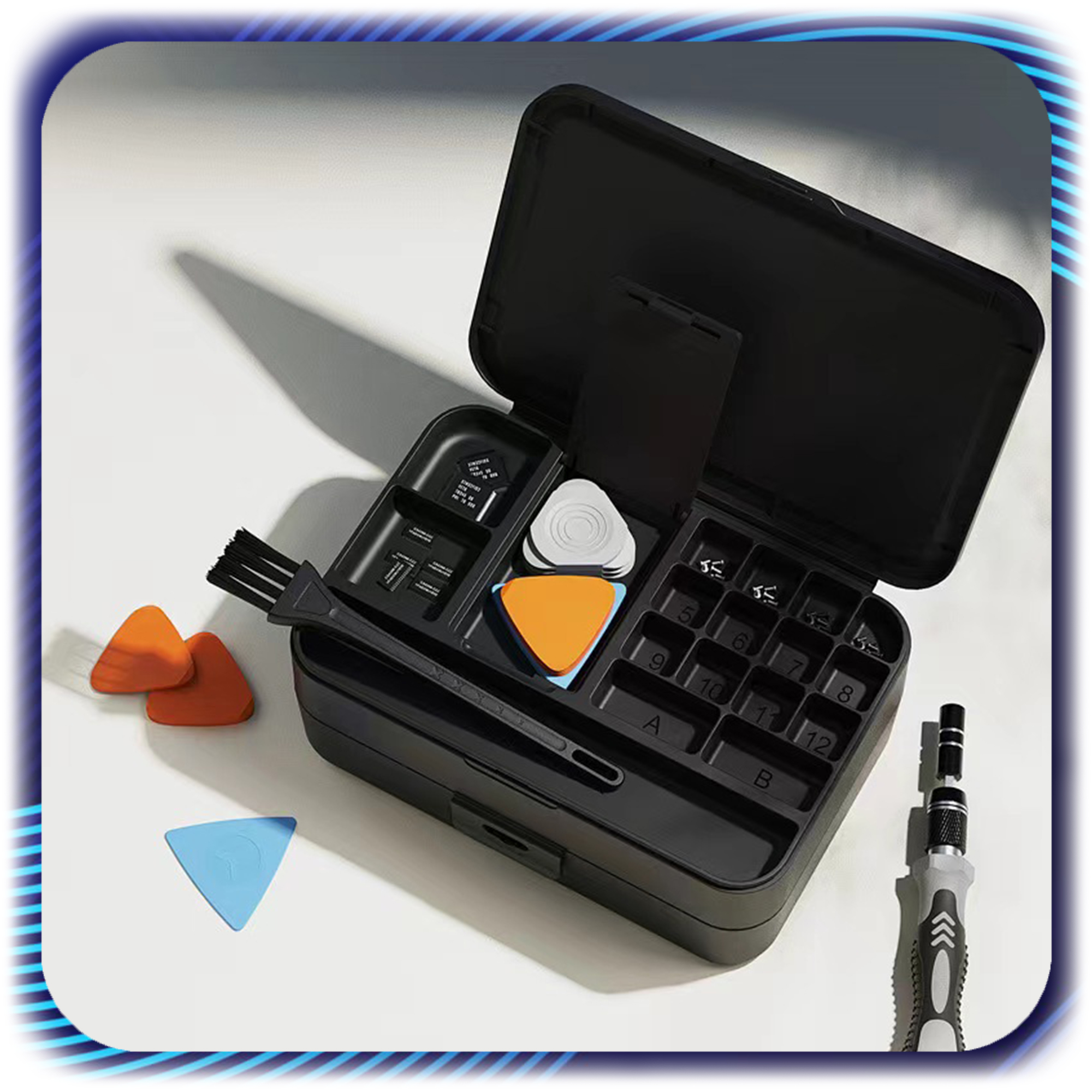 - Опрятность и организация: прочный кейс с отделениями обеспечивает аккуратное хранение инструментов и легкий доступ к каждому из них.