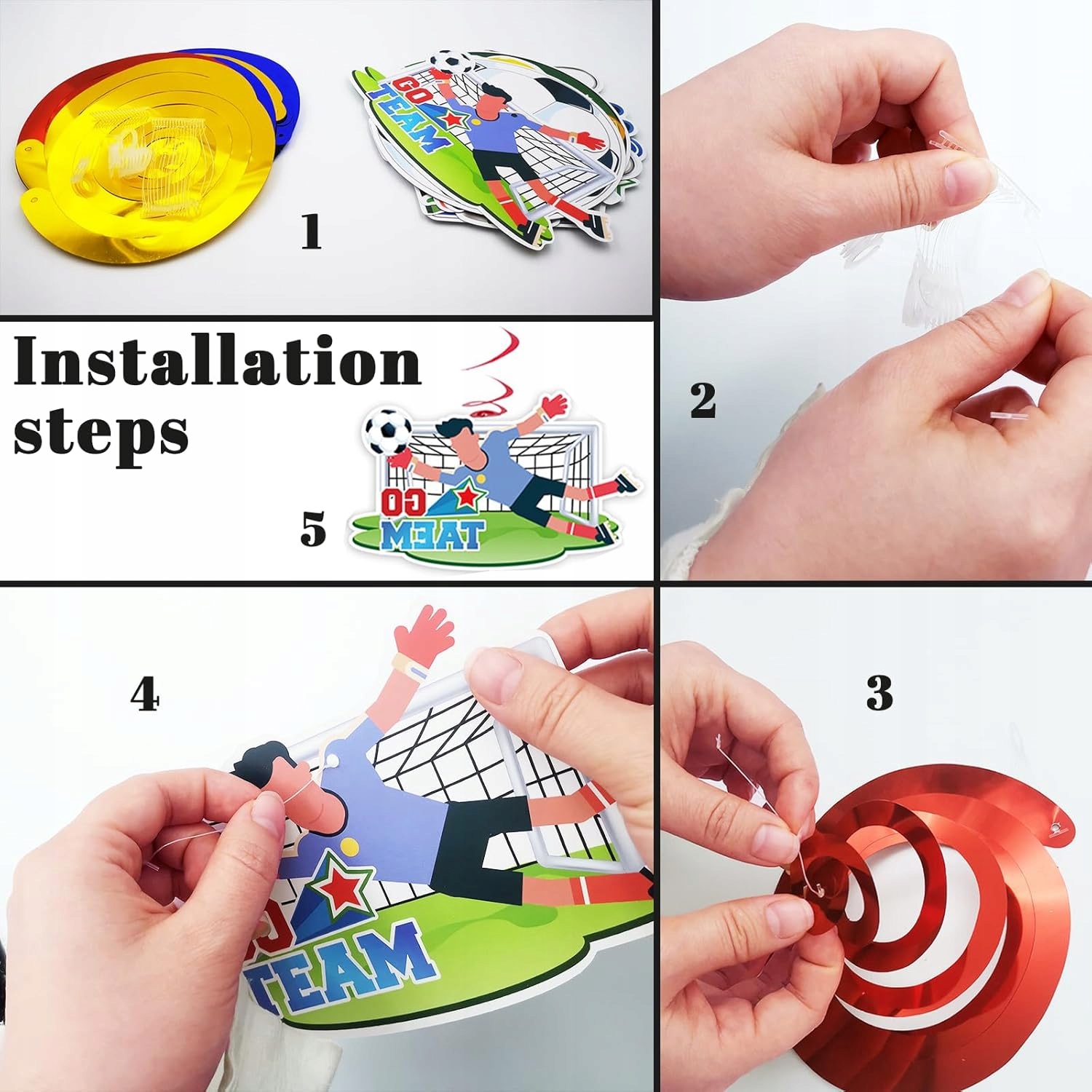 - Гости всех возрастов будут в восторге и, видя сет -футбольные мотивы и чашку в вращающихся узорах. Их живые оттенки красного, зеленого, белого и синего цвета, безусловно, приведут фанатов в настроение, независимо от того, поддерживаете ли вы их родину или празднуете прекрасную игру. Размещение и удаление легко, что позволяет быстро украсить и чистить