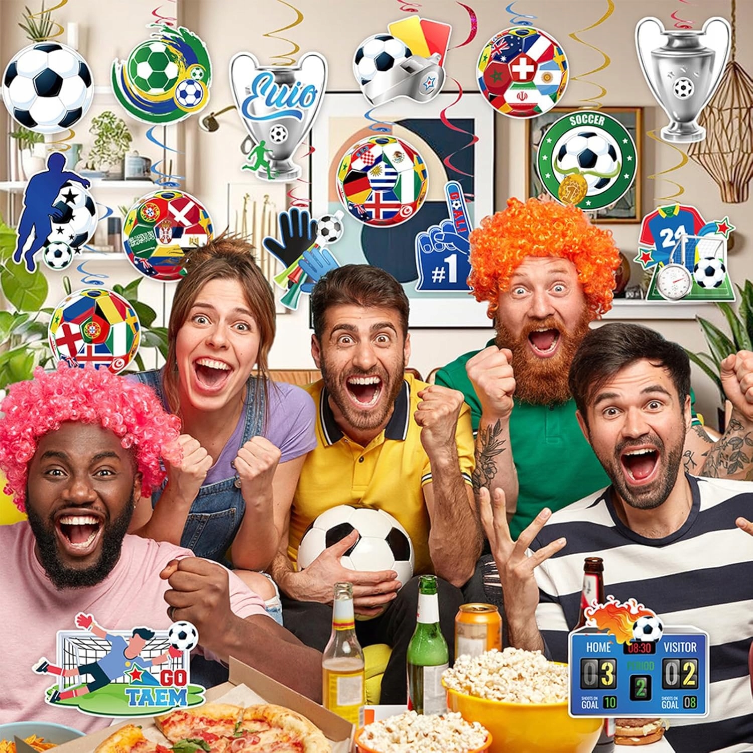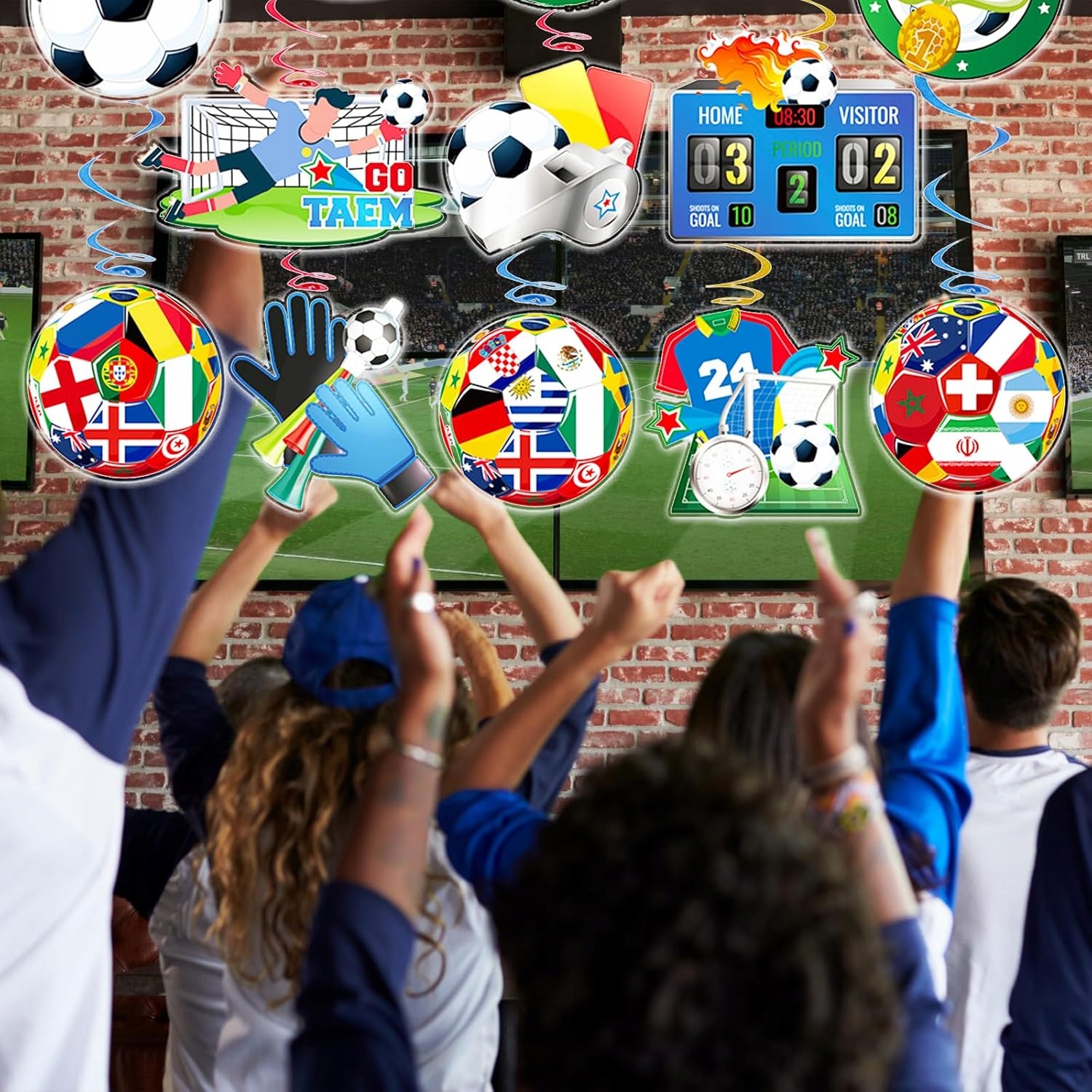- Рождественские украшения 32 Элементы, в том числе 12 висящих спиралей и 20 шаров, вырезанных от футбола, чтобы украсить любое внутреннее или внешнее пространство для футбольной вечеринки