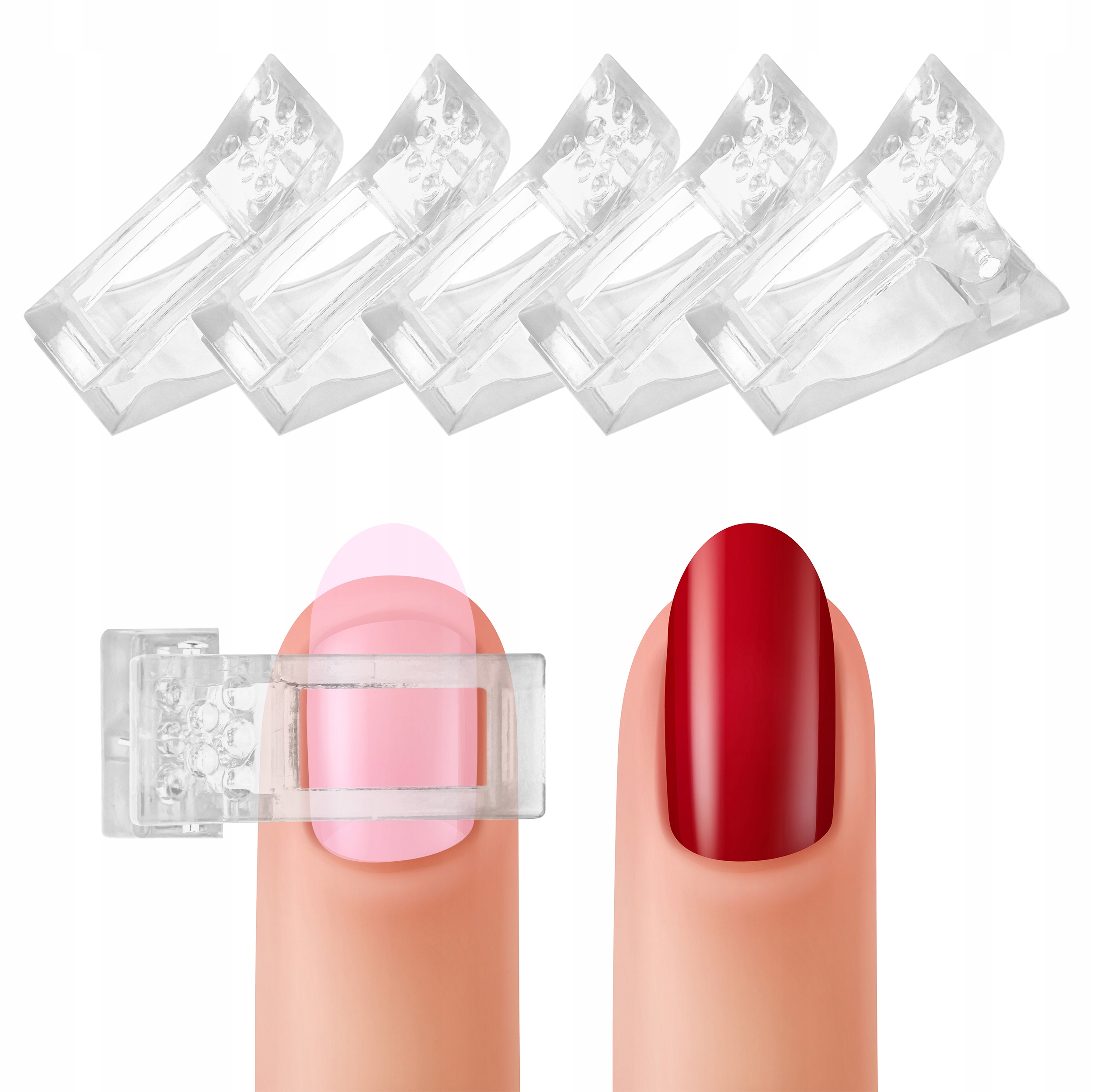 Прозрачная текстура облегчает проникновение ультрафиолета. Зажимы значительно облегчают укладку ногтей в технике акрилового геля, благодаря им можно быстро создать идеальный изгиб C.
