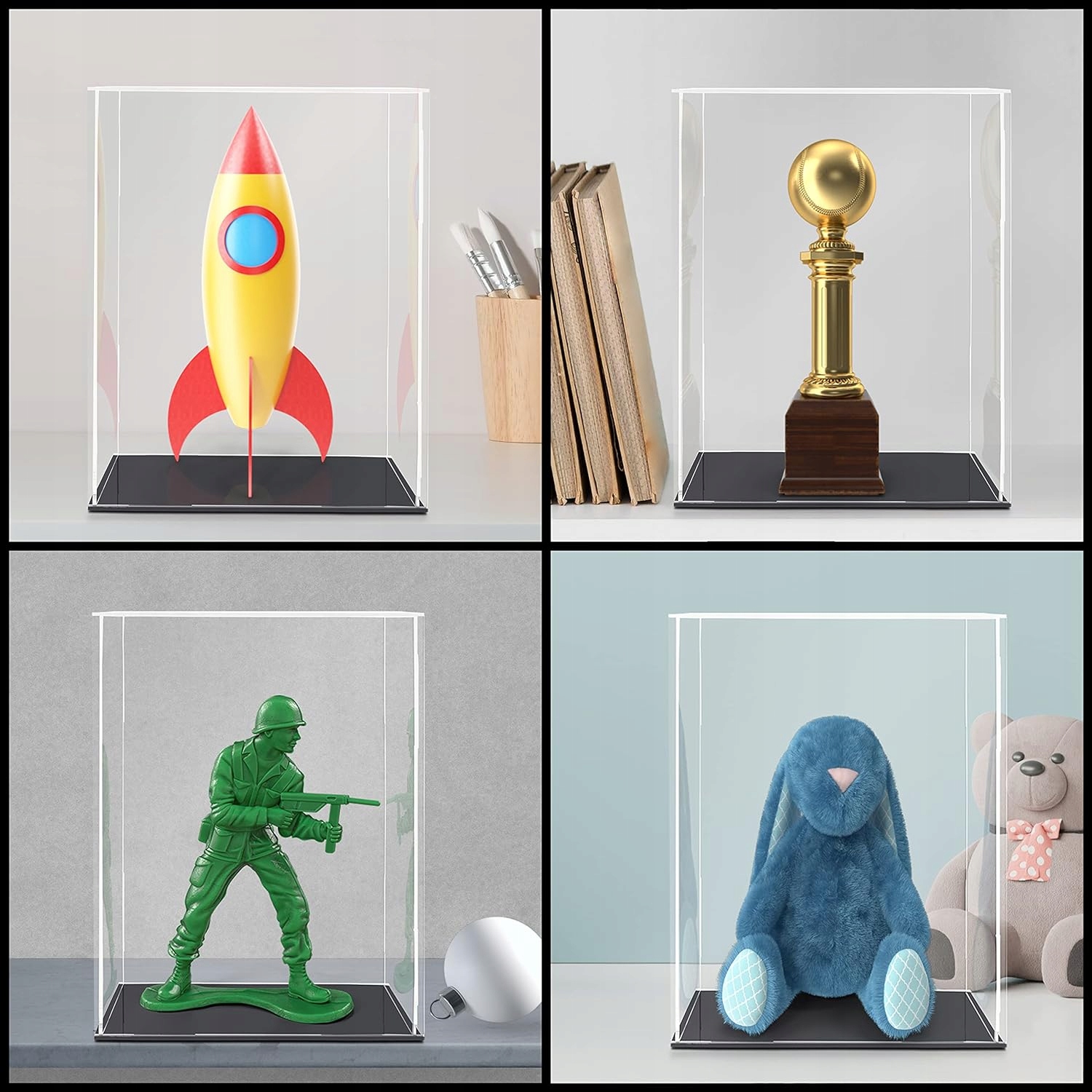 - АКРИЛОВАЯ КОРОБКА ПРЕМИУМ ПРЕМИУМ: Этот презентационный дисплей изготовлен из прозрачного пластика премиум-класса и имеет прозрачный, современный дизайн, который легко чистится. Акриловый корпус гладкий и тонкий, но прочный и долговечный, с глянцевой черной основой. Подставка устойчива к пыли и царапинам. Защищает вашу коллекцию, уменьшая солнечный свет и ультрафиолетовое излучение, а также замедляет разрушение пластика. Он хорошо сбалансирован, прочен и надежен, поэтому его трудно опрокинуть и он не раскачивается.