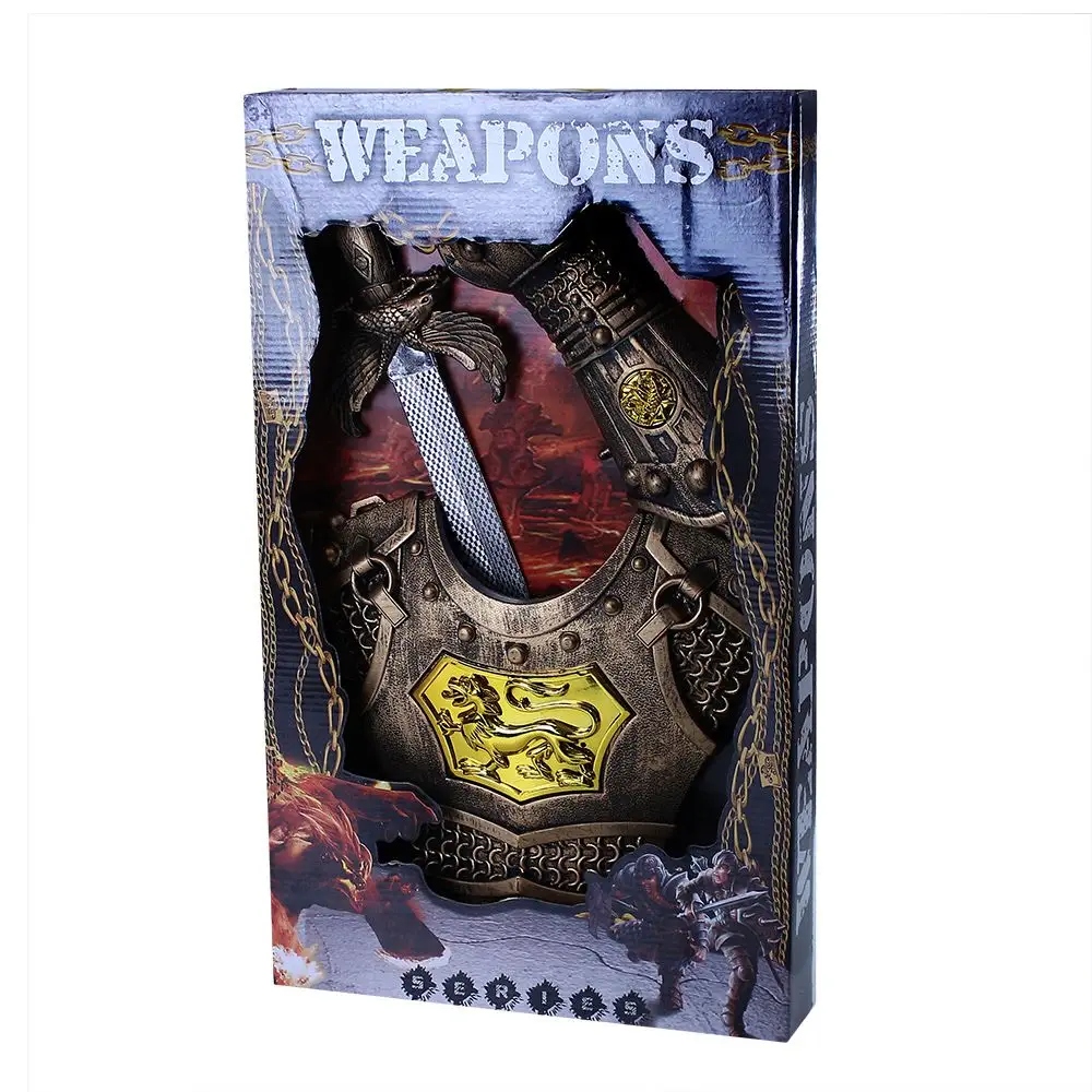 Отважный и отважный рыцарь готов веселиться вместе! Рыцарские аксессуары станут прекрасным дополнением костюма каждого маленького участника карнавального бала – в комплект входит фрагмент доспеха, меч и перчатка со сжатым кулаком. Все элементы костюма стилизованы и выглядят так, будто сделаны из меди, отмеченной символикой золотого дракона.