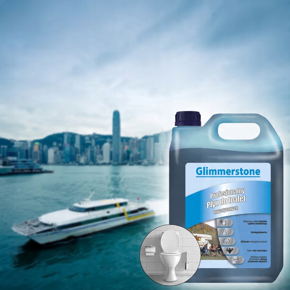 Туристическая туалетная жидкость Glimmerstone — это концентрированная жидкость, которая расщепляет содержимое сборных бачков переносных туалетов и стационарных туалетов в караванах и яхтах.