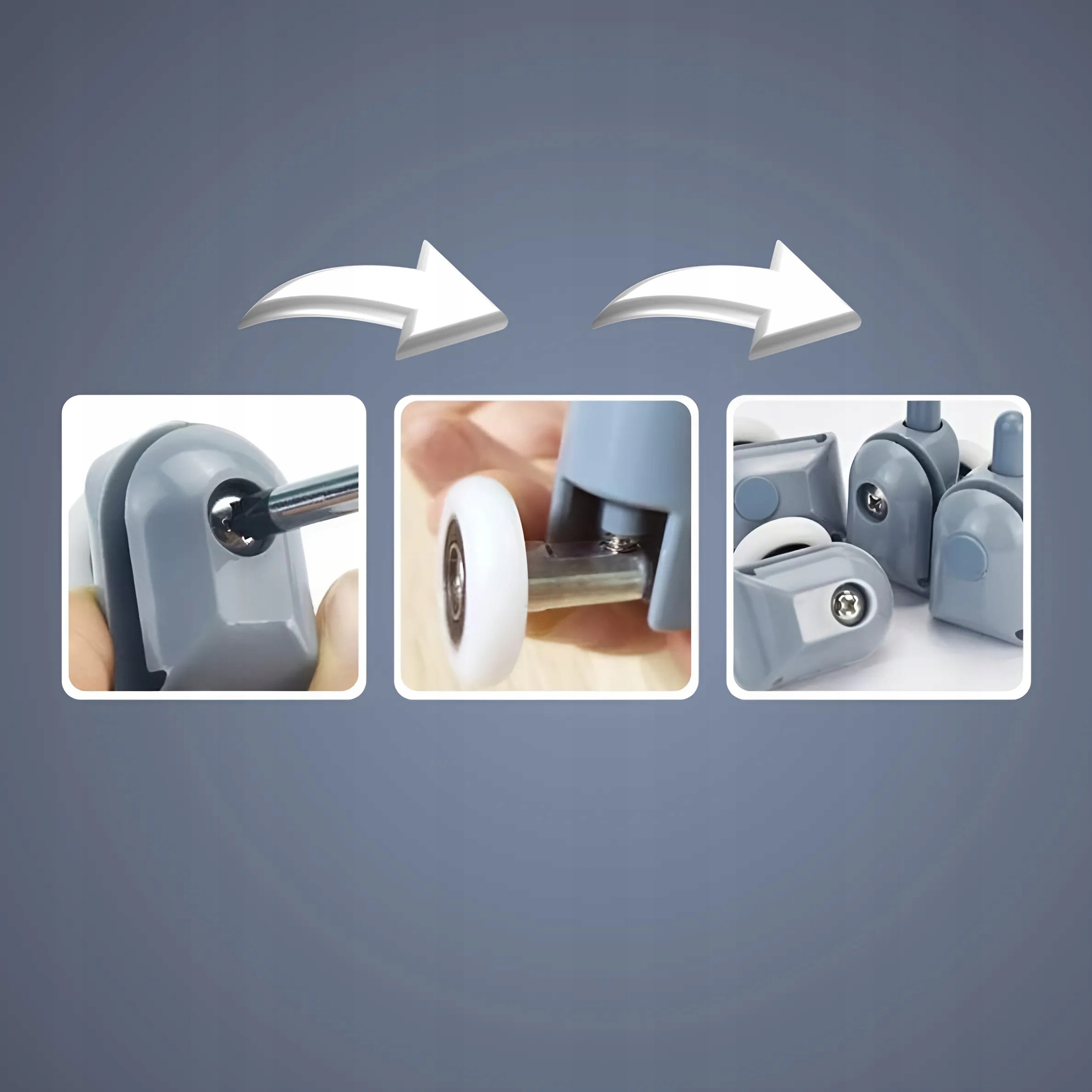 Колеса для душевой кабины Убедитесь, что гладкое открытие и закрытие двери. Благодаря использованию шариковых подшипников дверь движется тихо и без сопротивления, что улучшает комфорт использования кабины.