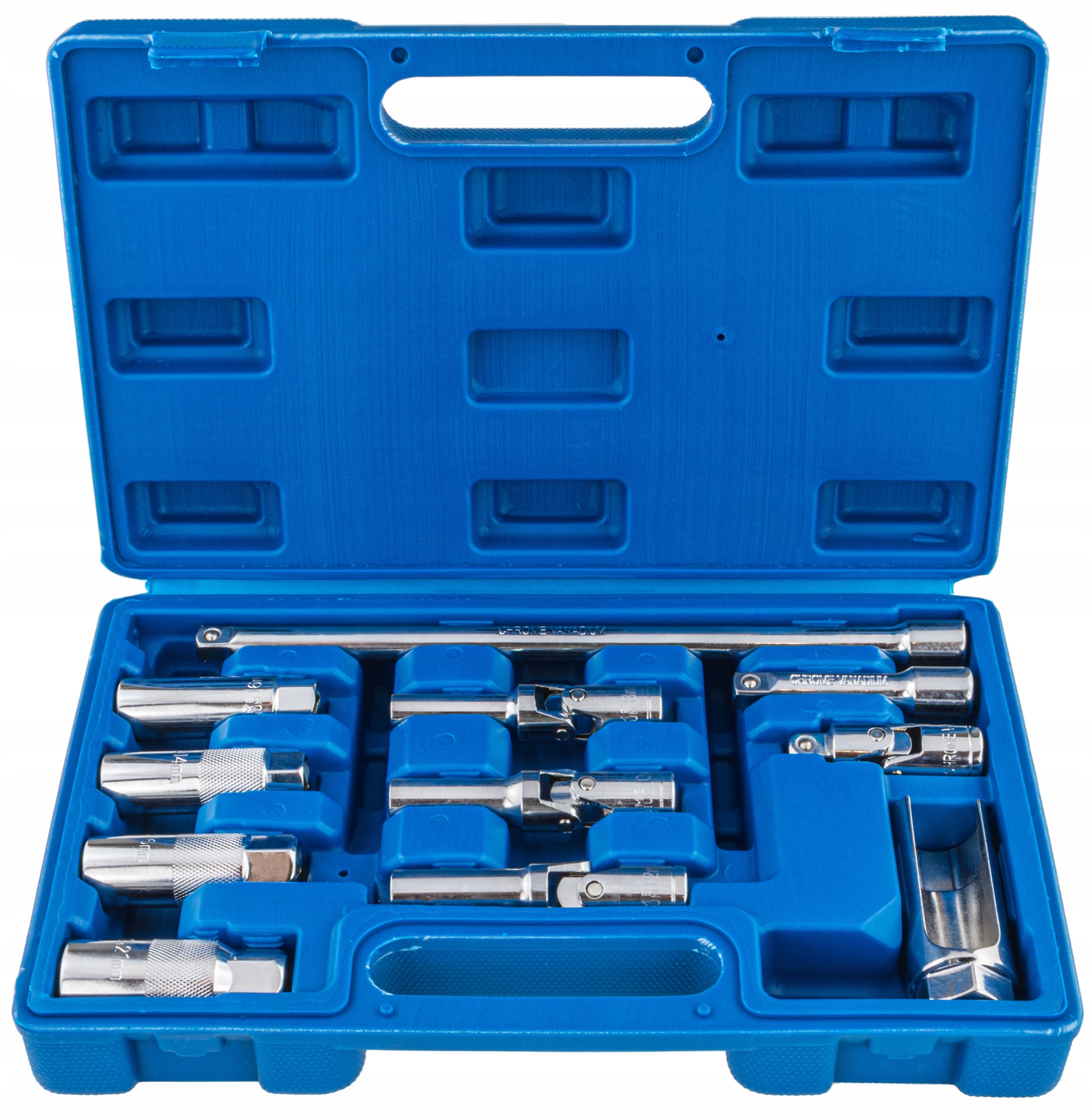 - Набор из 11 предметов 3/8 дюйма: 2 удлинителя 75 мм, 250 мм, 4 свечи зажигания: 14 мм, 16 мм, 16 мм (тонкие стенки) 21 мм