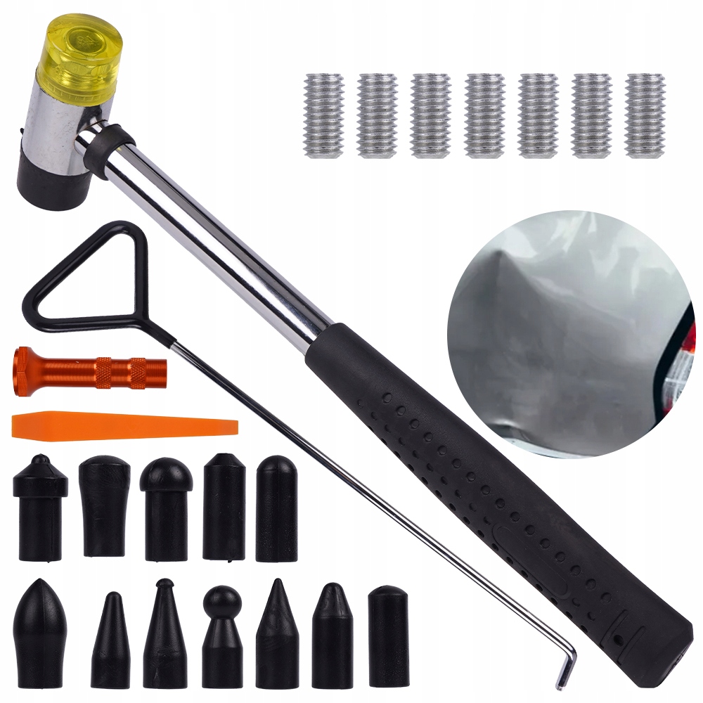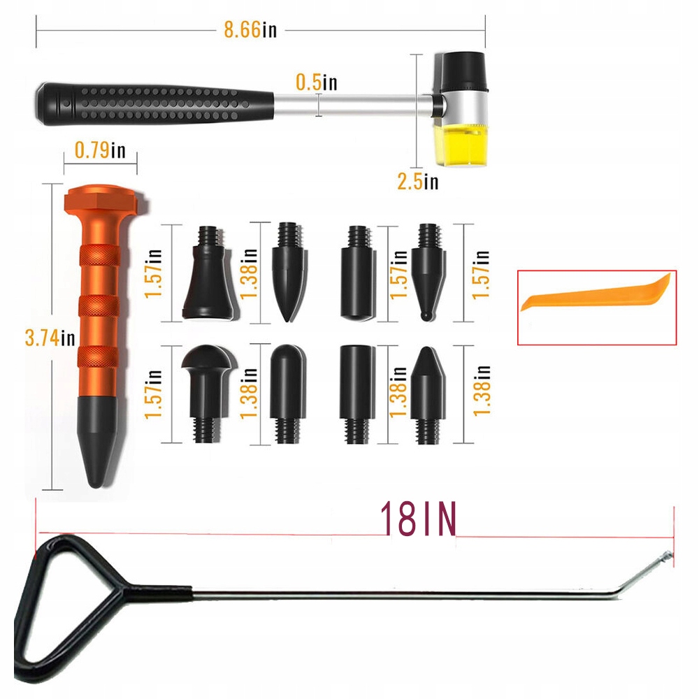 🔨🔨🔨【Множество возможностей комбинирования】 Благодаря заостренным, плоским и круглым головкам и Т-образному ремонту комплект, набор для ремонта вмятин представляет собой длинный стержень длиной 48 см. Особенно подходит для ремонта вмятин, находящихся вне досягаемости.