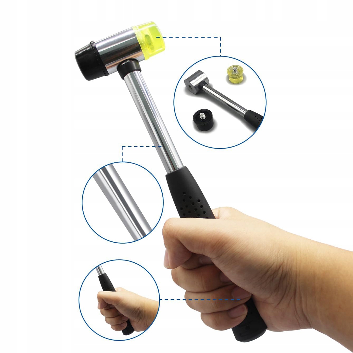 🔨🔨🔨 【Высококачественный материал】 Желтая головка молотка изготовлена из полиуретана, который мягкие и полупрозрачные, а другие черные головки молотков изготовлены из высококачественной стали, износостойкой и противоскользящей. Резиновый молоток используется для ремонта небольших вмятин неправильной формы и позволяет быстро отремонтировать вмятины на кузове.