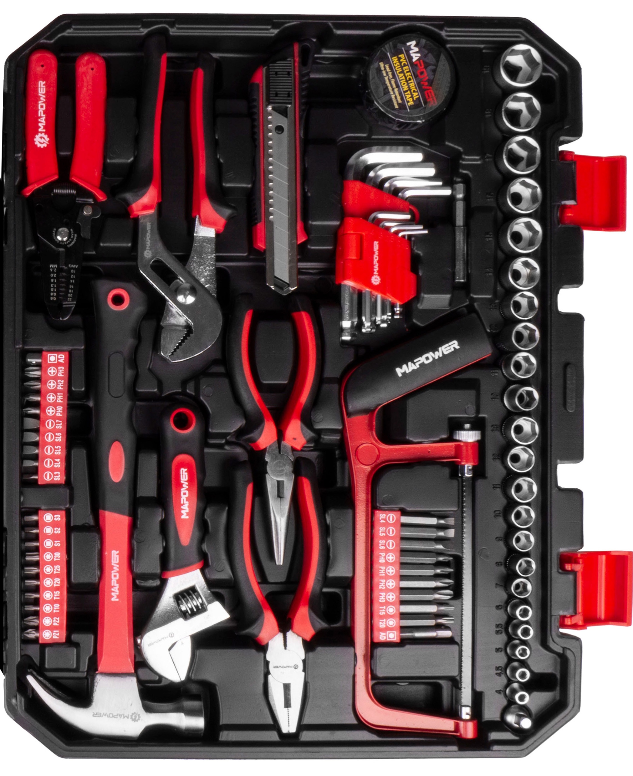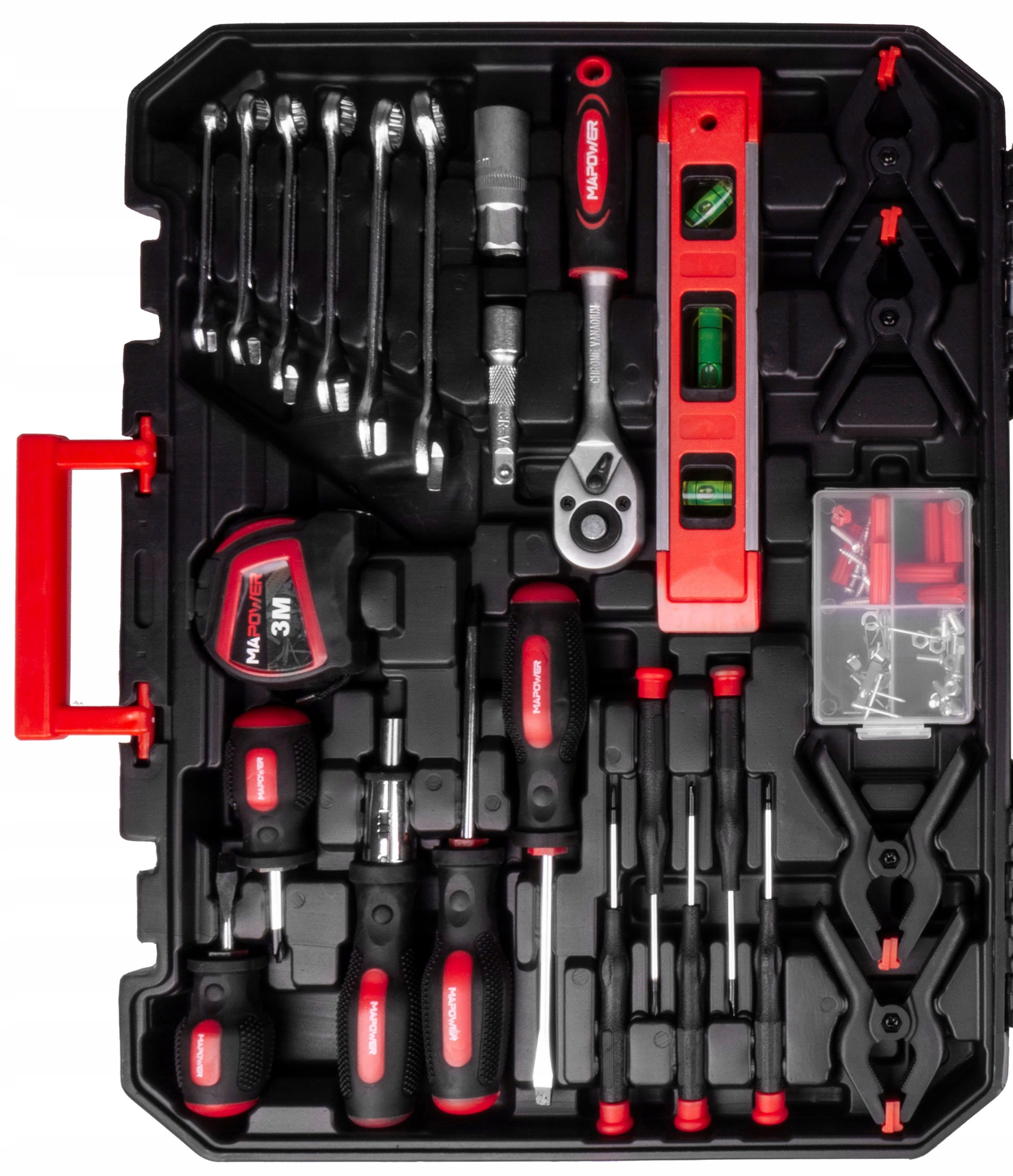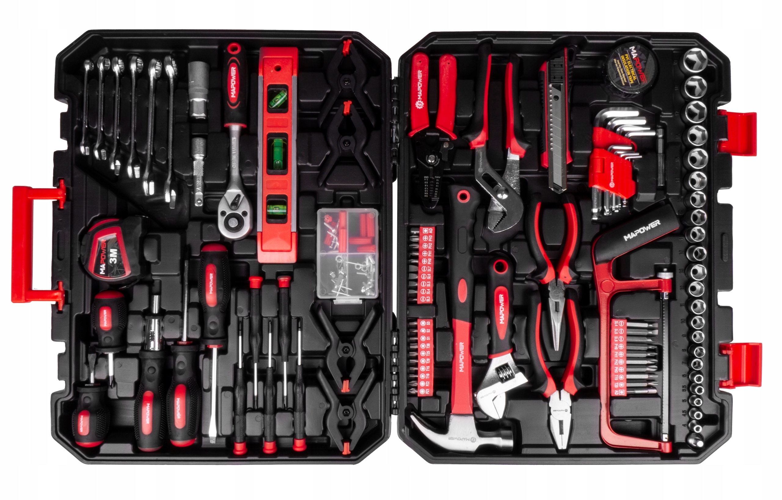 НАБОР РУЧНОГО ИНСТРУМЕНТА В КОРПУСЕ MPTS168 — ТРЕЩОТКА, ГОЛОВКИ, КОМБИНИРОВАННЫЕ КЛЮЧИ, ШЕСТИГРАННЫЕ КЛЮЧИ, ОТВЕРТКИ, СТОЛЯЧНЫЙ МОЛОТОК И МНОГОЕ ДРУГОЕ!